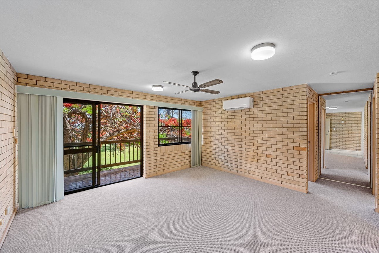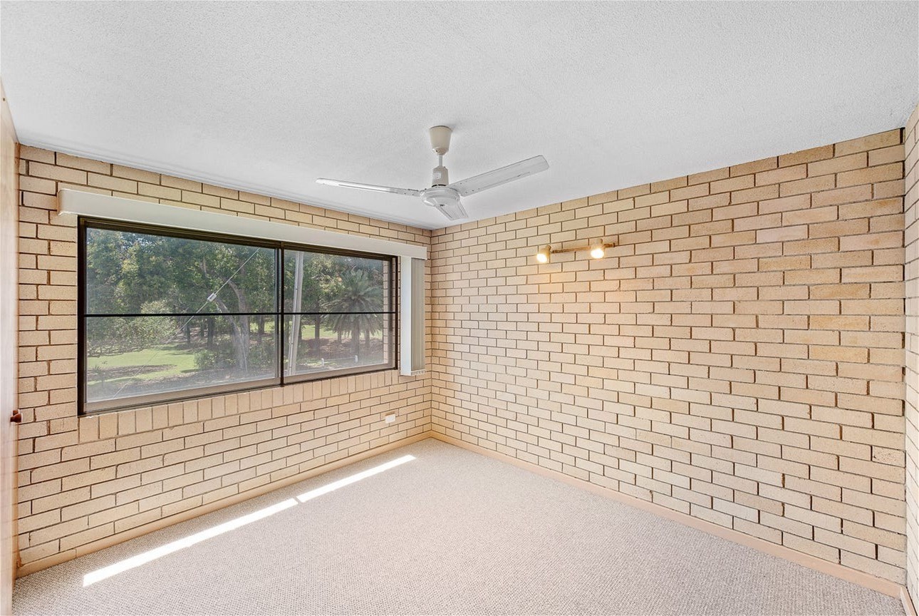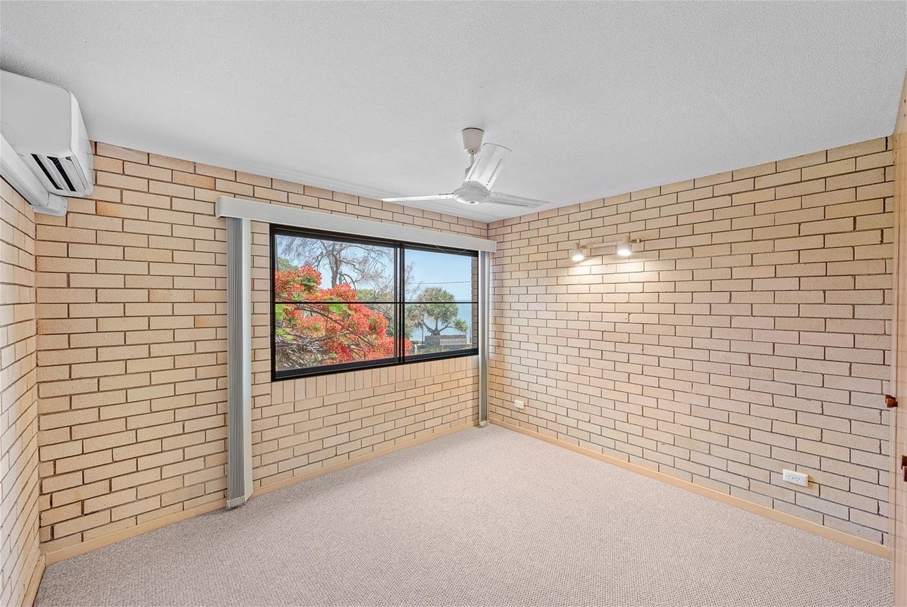 Both bedrooms feature built in robes and ceiling fans, with the main bedroom air-conditioned for year round comfort. The unit includes a modern main bathroom, a separate toilet, and a convenient laundry space located within the bathroom.
