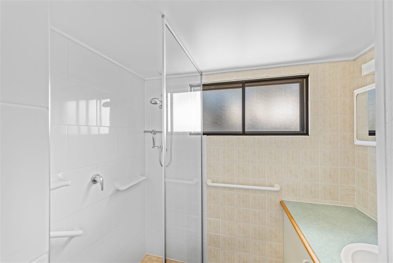 The kitchen boasts ample bench space and storage, complete with a dishwasher and electric cooking, making meal preparation a breeze. The air conditioned living area flows seamlessly onto the verandah, the ideal spot to relax with your morning coffee while taking in the ocean views and breezes.