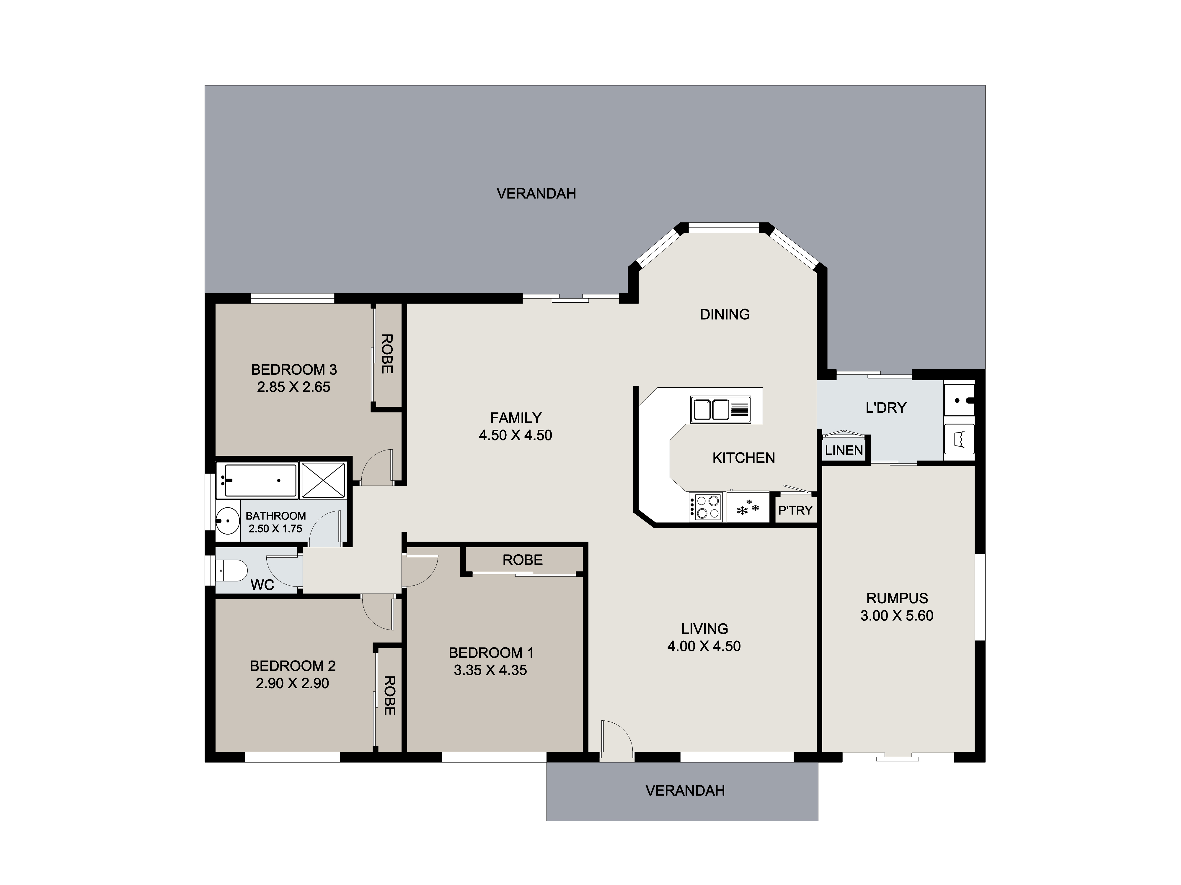 • Three good sized bedrooms all with air conditioning, ceiling fans and built in robes