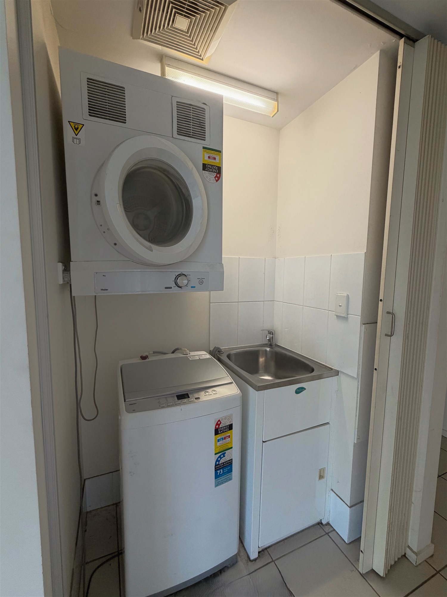 Featuring an open plan kitchen and living area, the home comes partially furnished with white goods and includes a dishwasher for everyday convenience. Air conditioning is provided to the living area and both bedrooms, ensuring year round comfort.