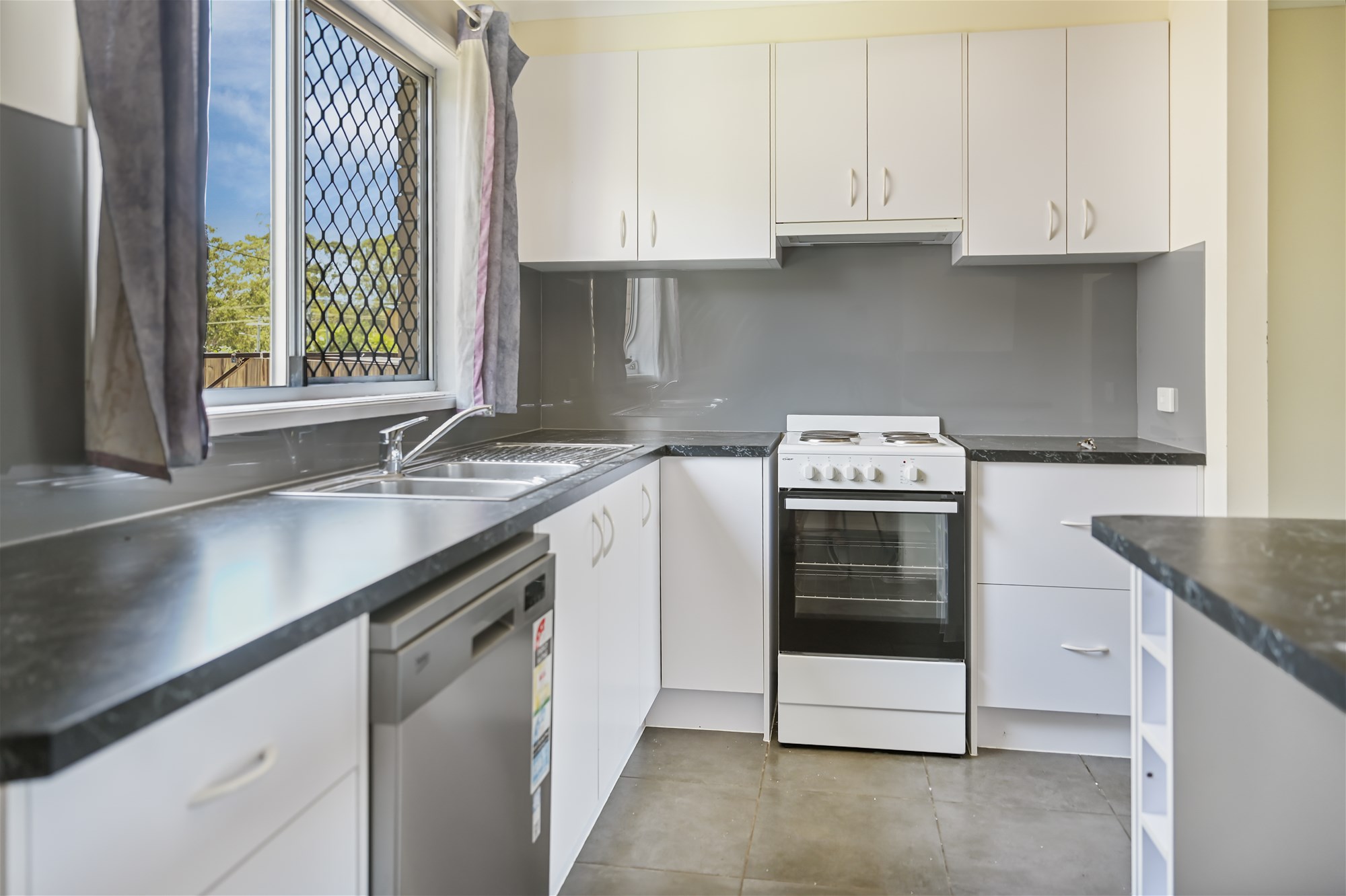 Renovated kitchen with ample bench space and storage