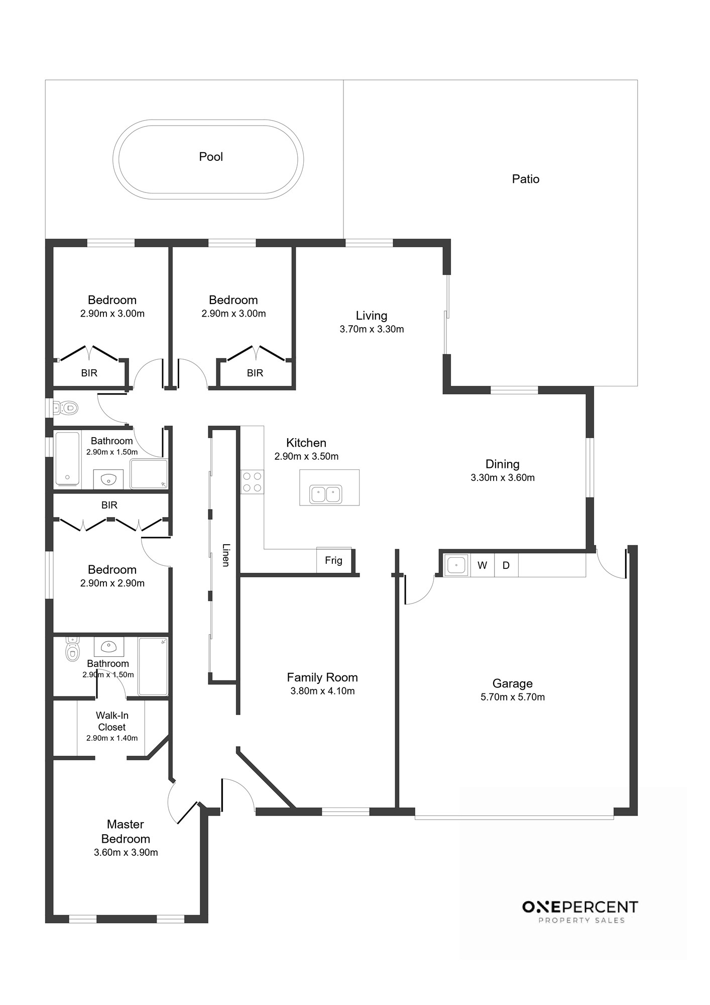 Four spacious, carpeted bedrooms – three with air conditioning and built-in mirrored robes
