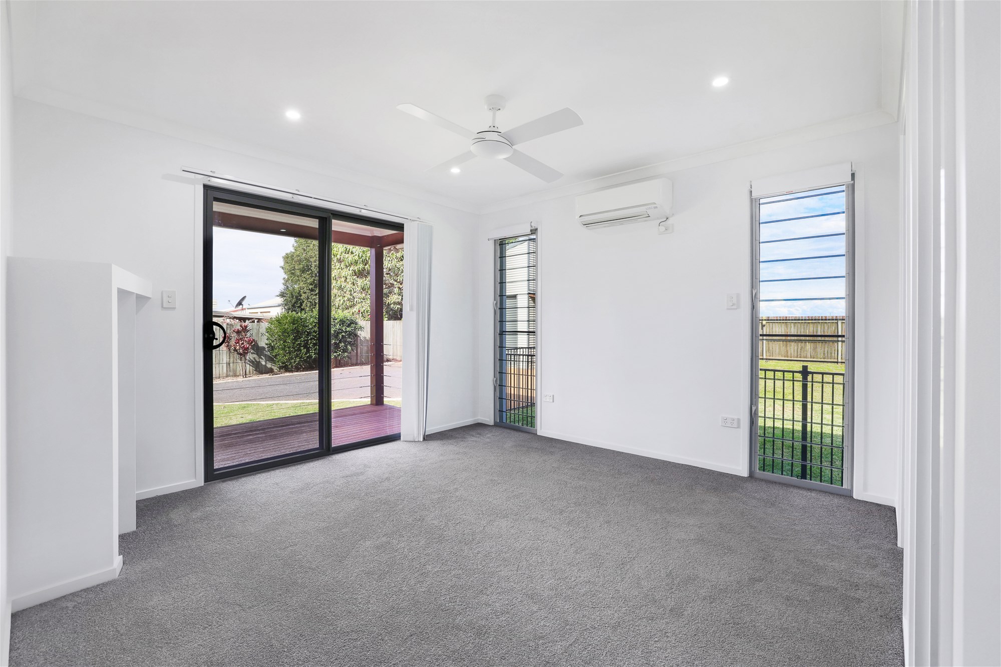 o Master bedroom with 2.5Kw Mitsubishi aircon, ceiling fan, brand new carpet, sliding door access to the deck and large walk-in wardrobe