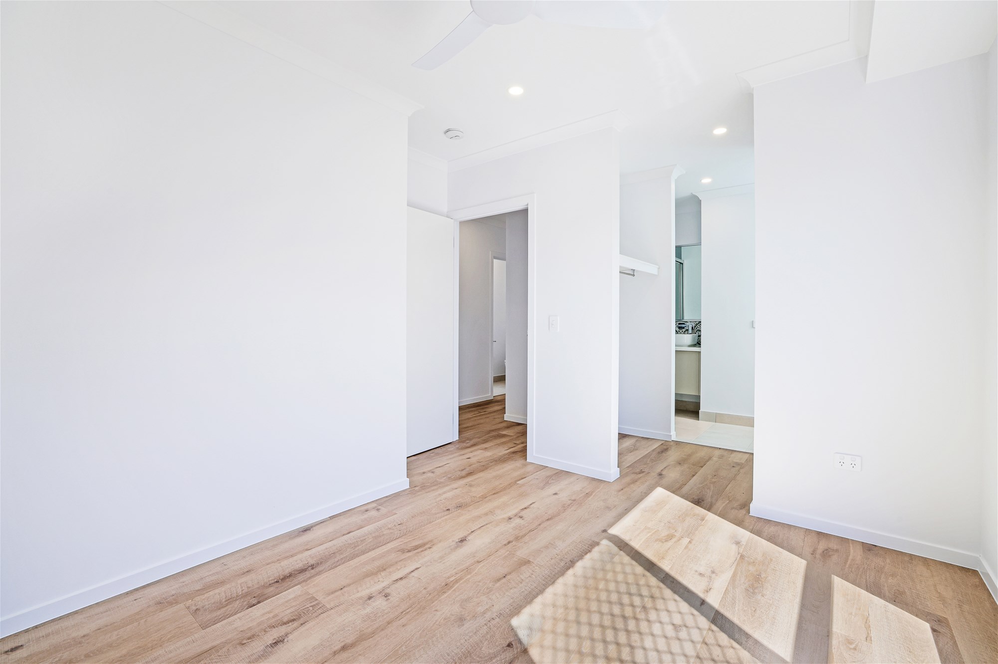 o Bedroom 2 includes built-in wardrobes, ceiling fan, timber-look flooring and a large feature window