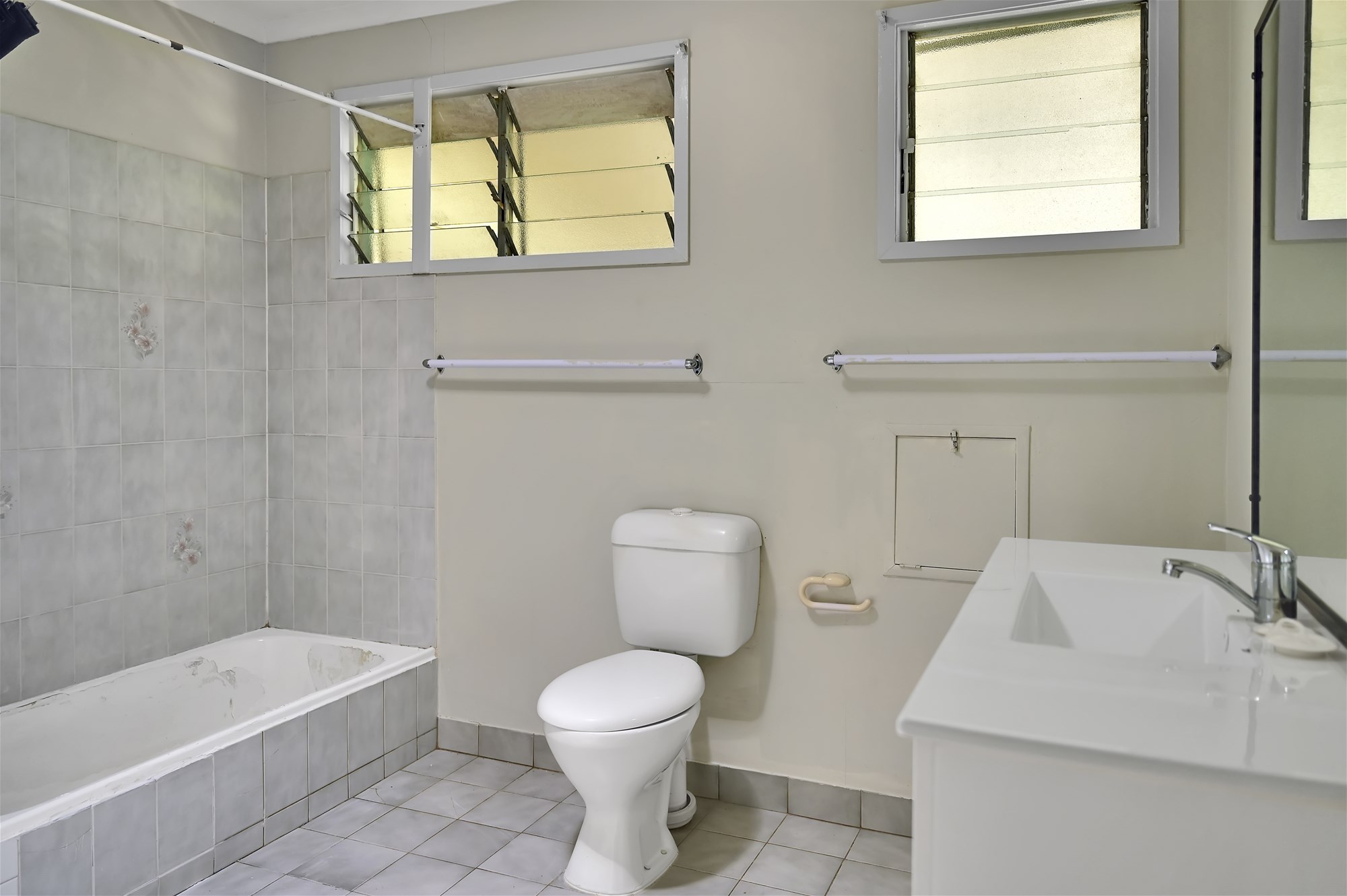 Main bathroom is neat and functional, with a separate toilet