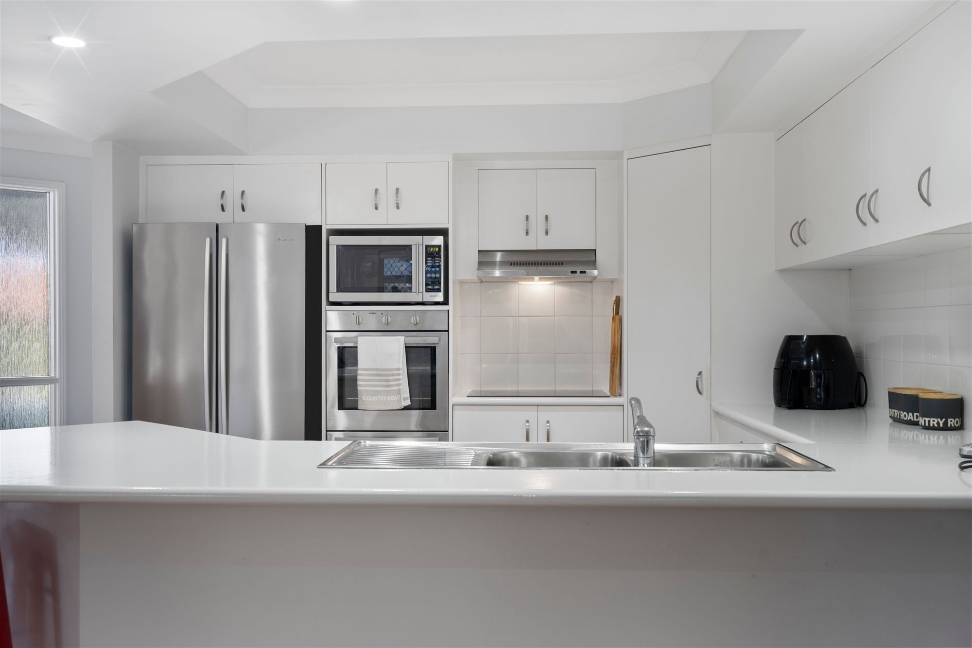 o Elegant kitchen with ample storage and bench space, double sink and stainless steel appliances including an electric stove, oven and dishwasher