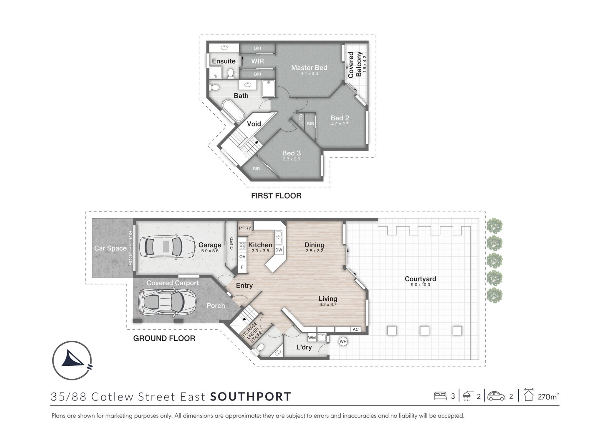 Upstairs you will find three generously sized bedrooms, including a sophisticated master suite with its own ensuite, walk-through robe and covered balcony. This level also features a show-stopping bathroom, integrated storage, custom cabinetry and plush carpet, further enhancing the home’s move-in-ready appeal. Not only that, this charming townhouse also comes with a total of 3x car spaces, ensuring you’ll never have to worry about trying to find a park for you or your guests.