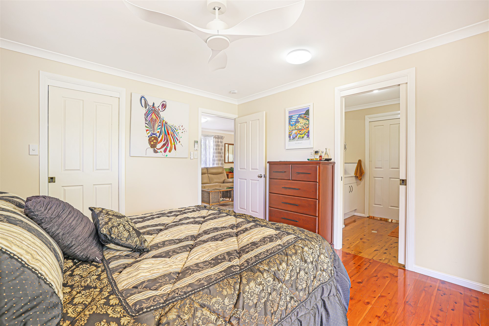 o Master bedroom with air-conditioning, ceiling fan, walk-in wardrobe, polished timber flooring and access to 2-way bathroom serving as an ensuite.