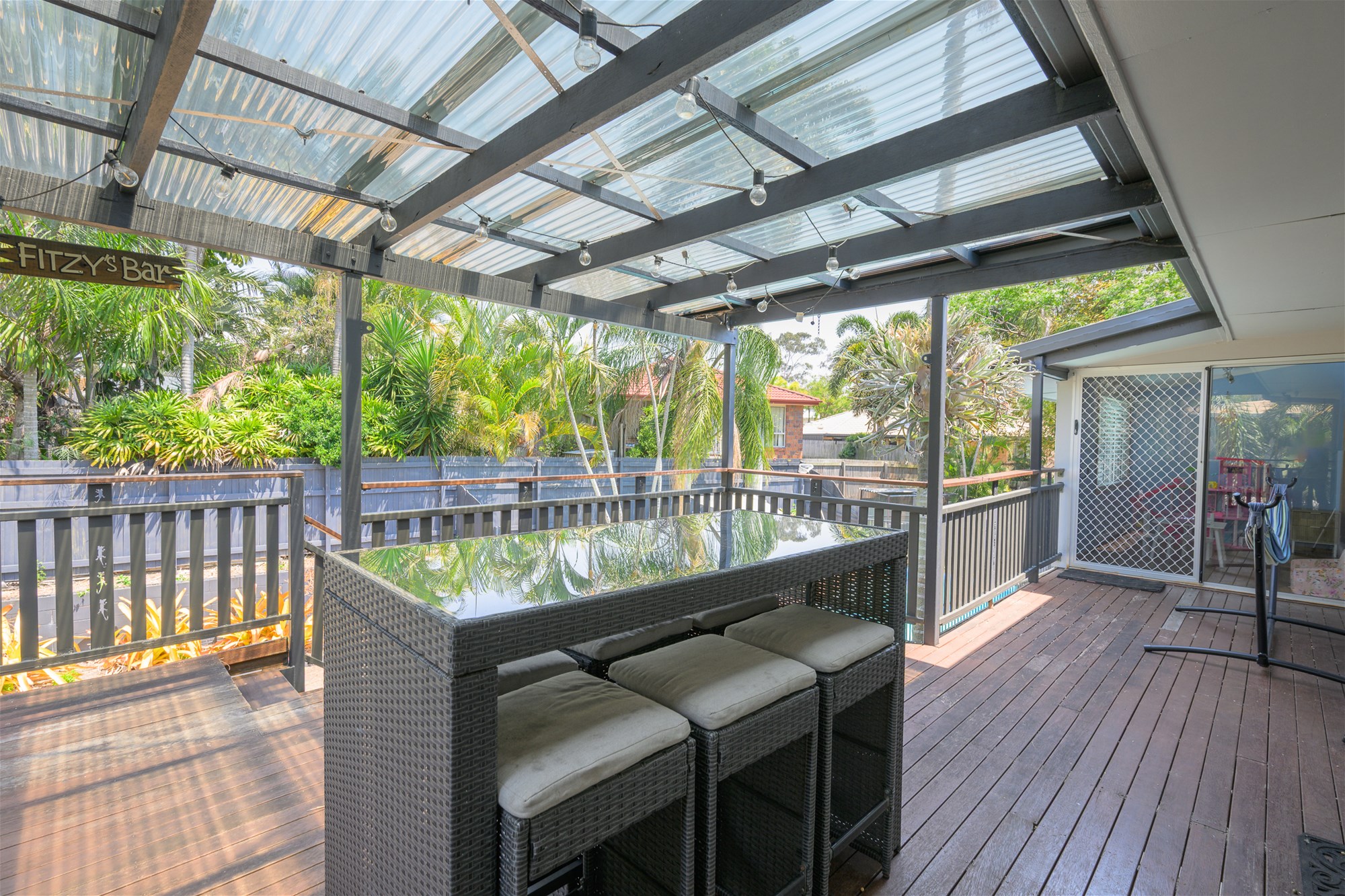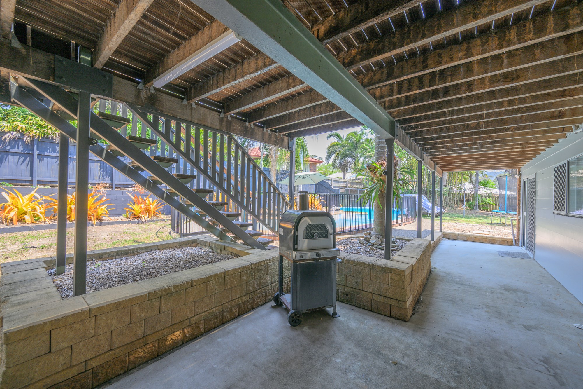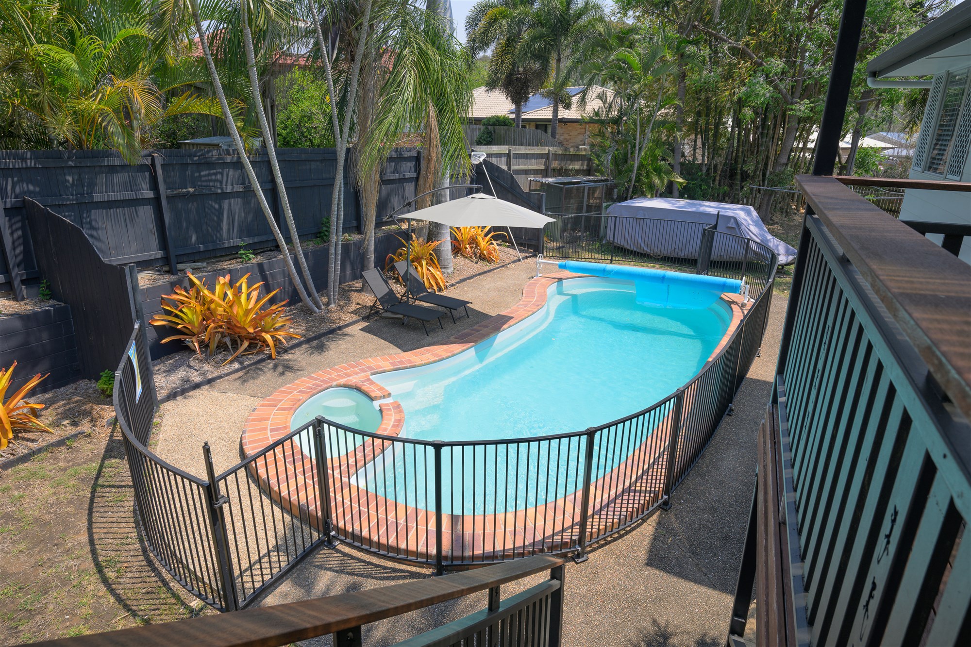 * Elevated entertaining deck overlooking the generous sized salt water pool