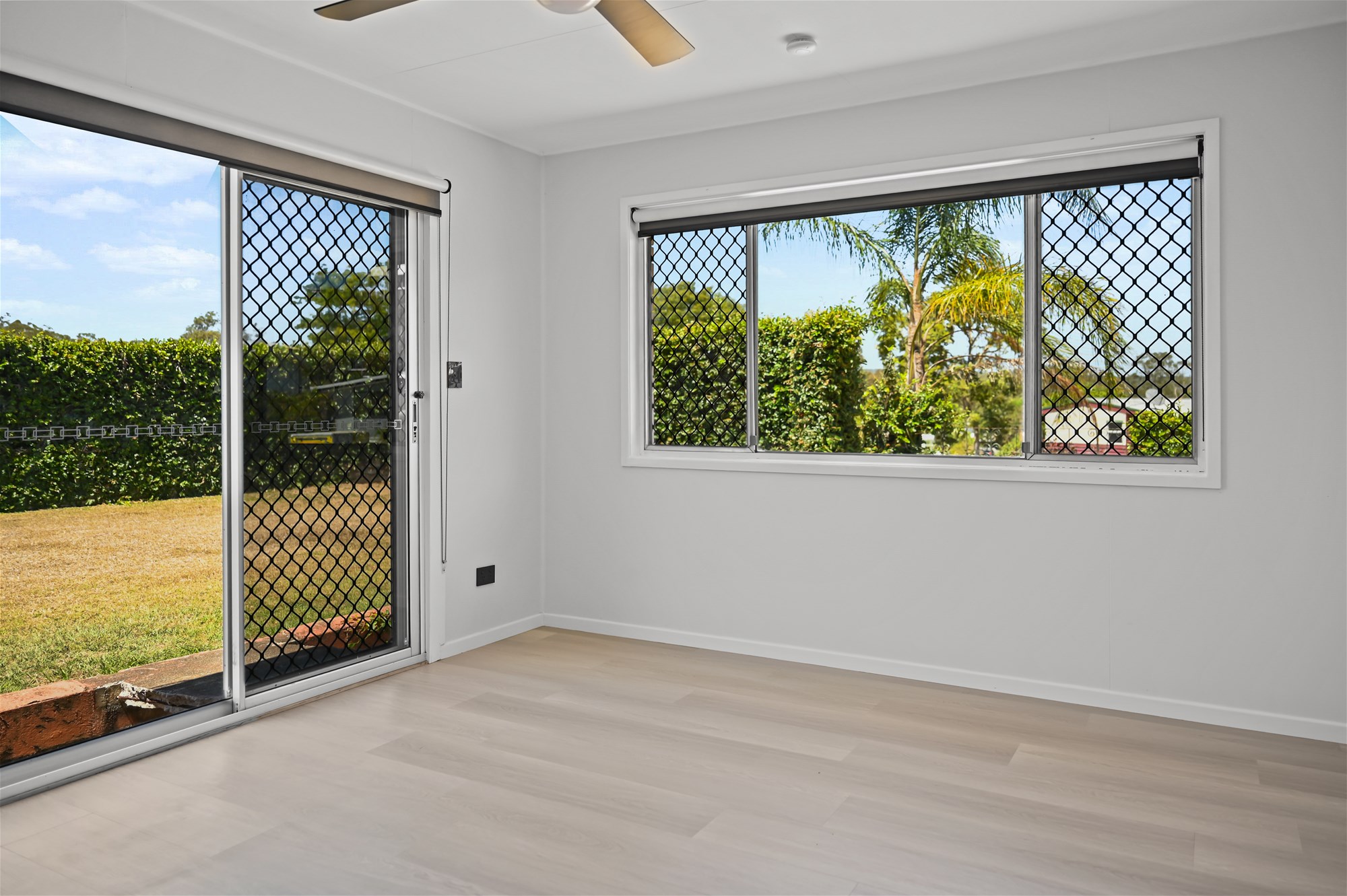 Three bedrooms, with the main bedroom privately positioned featuring air-conditioning and an oversized walk-in robe