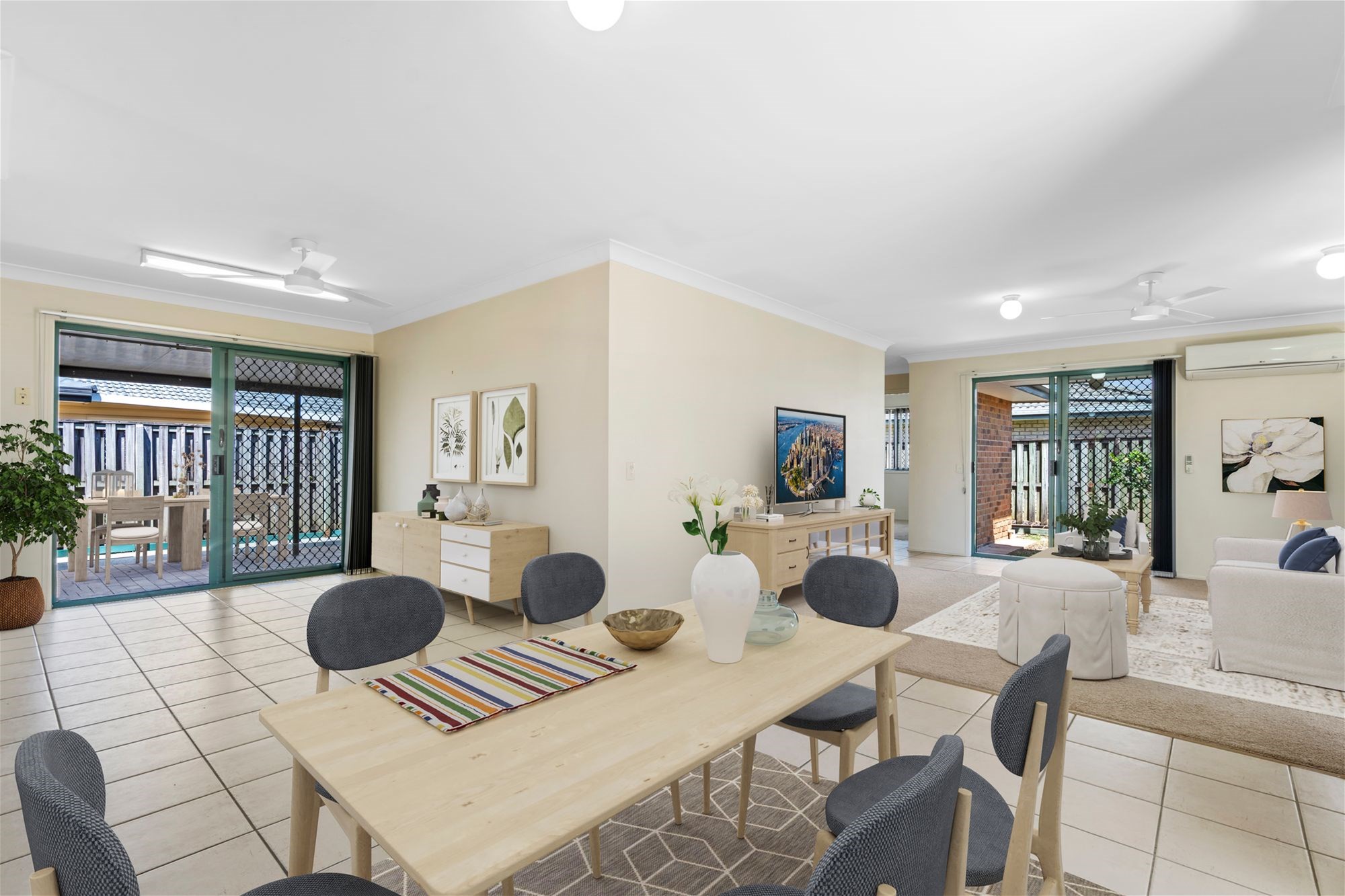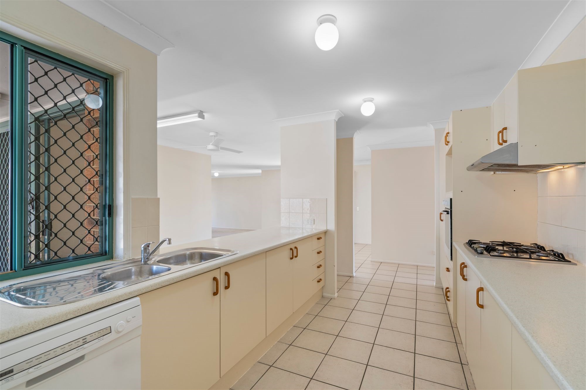 Step inside to discover open-plan living, dining, and lounge spaces filled with natural light and cooling breezes, complete with ceiling fans and air-conditioning for year-round comfort. The kitchen features a gas cooktop and flows directly out to the large undercover entertaining area — perfect for weekend BBQs and family gatherings.