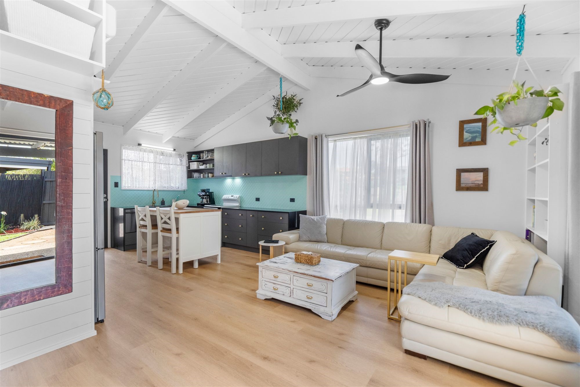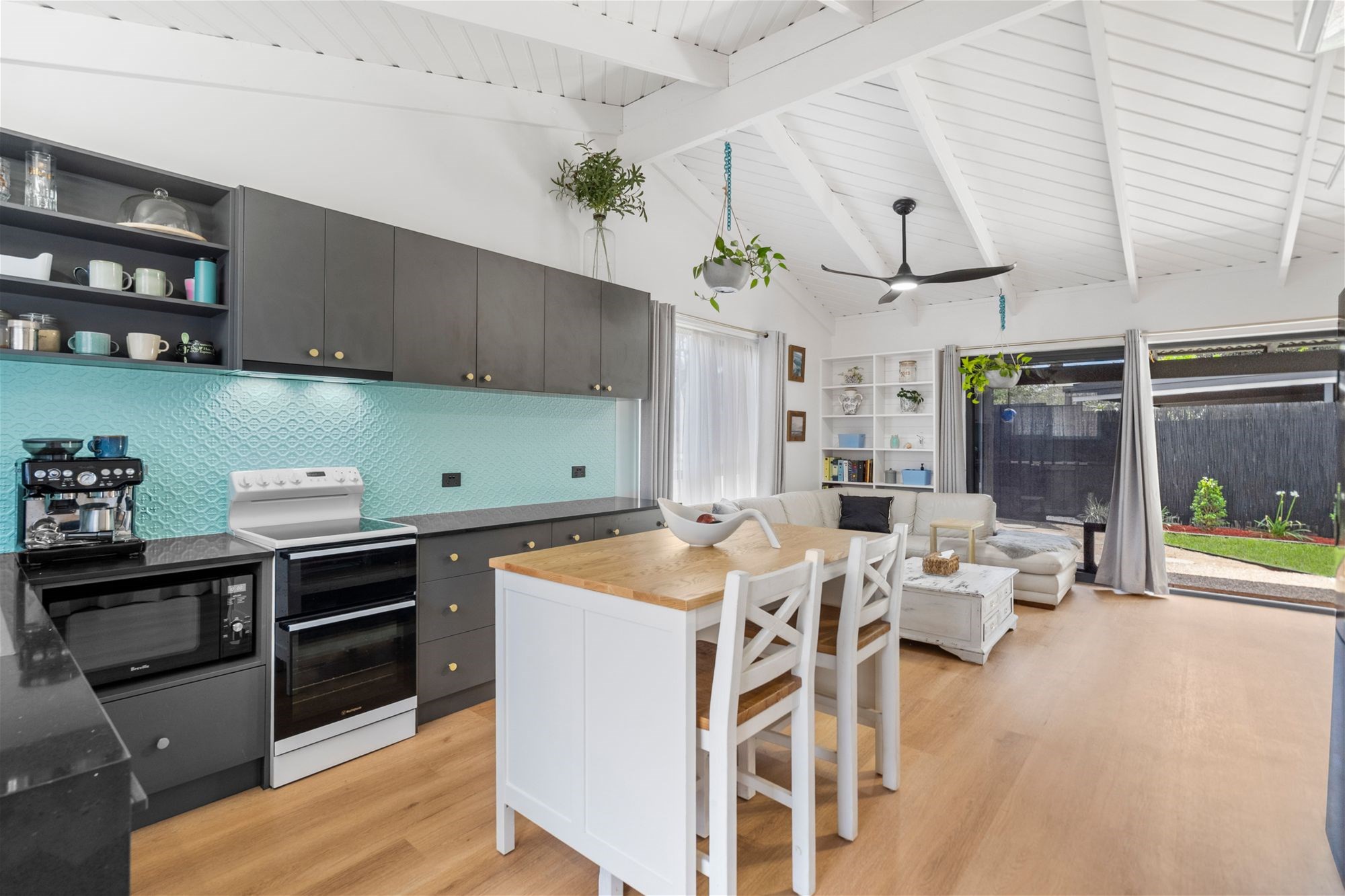 Bright & Spacious Living: Flooded with natural light, the open-plan kitchen, dining, and family room boasts striking raked cathedral ceilings and a fresh, light theme with new glass sliding doors/windows, some crimsafe security screens, freshly-laid, easy-care flooring, fresh paint, and shiplap feature walls.