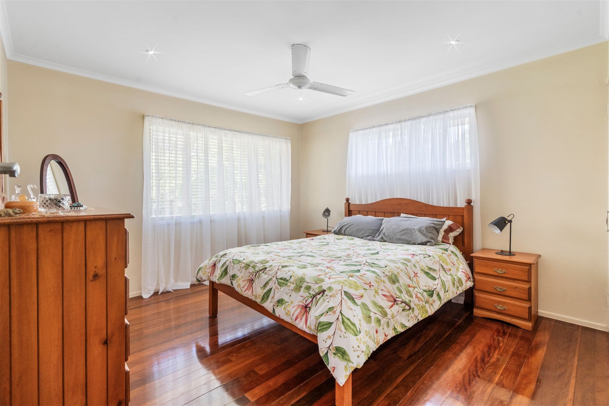 Upstairs features polished hardwood flooring throughout, 3 good-sized bedrooms with fans and built-ins, a main bathroom with bath and shower, plus a separate toilet.