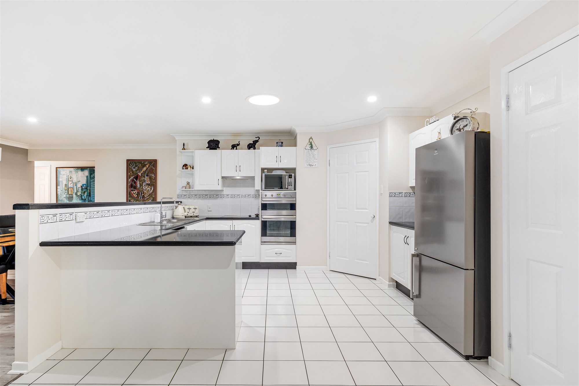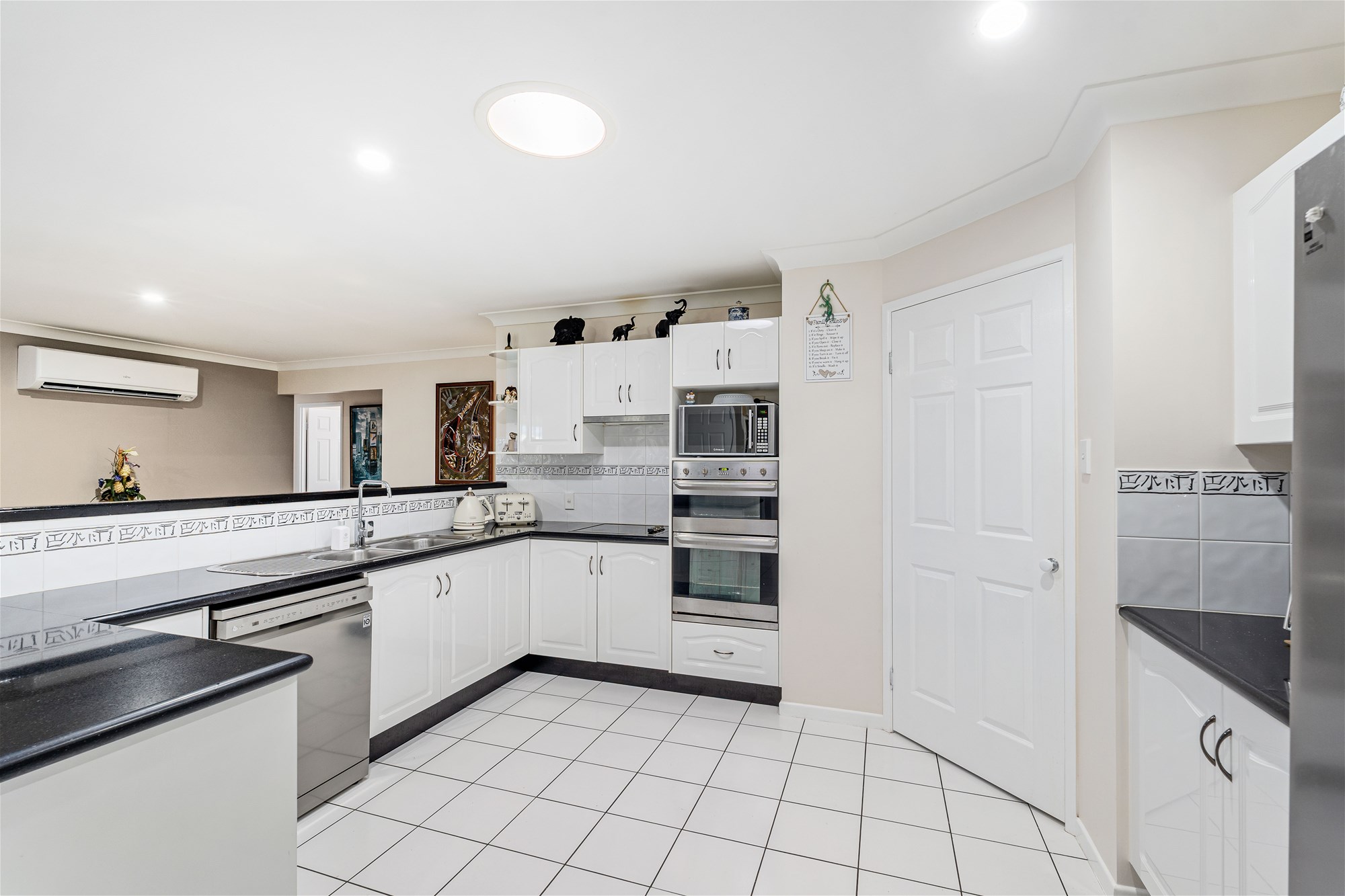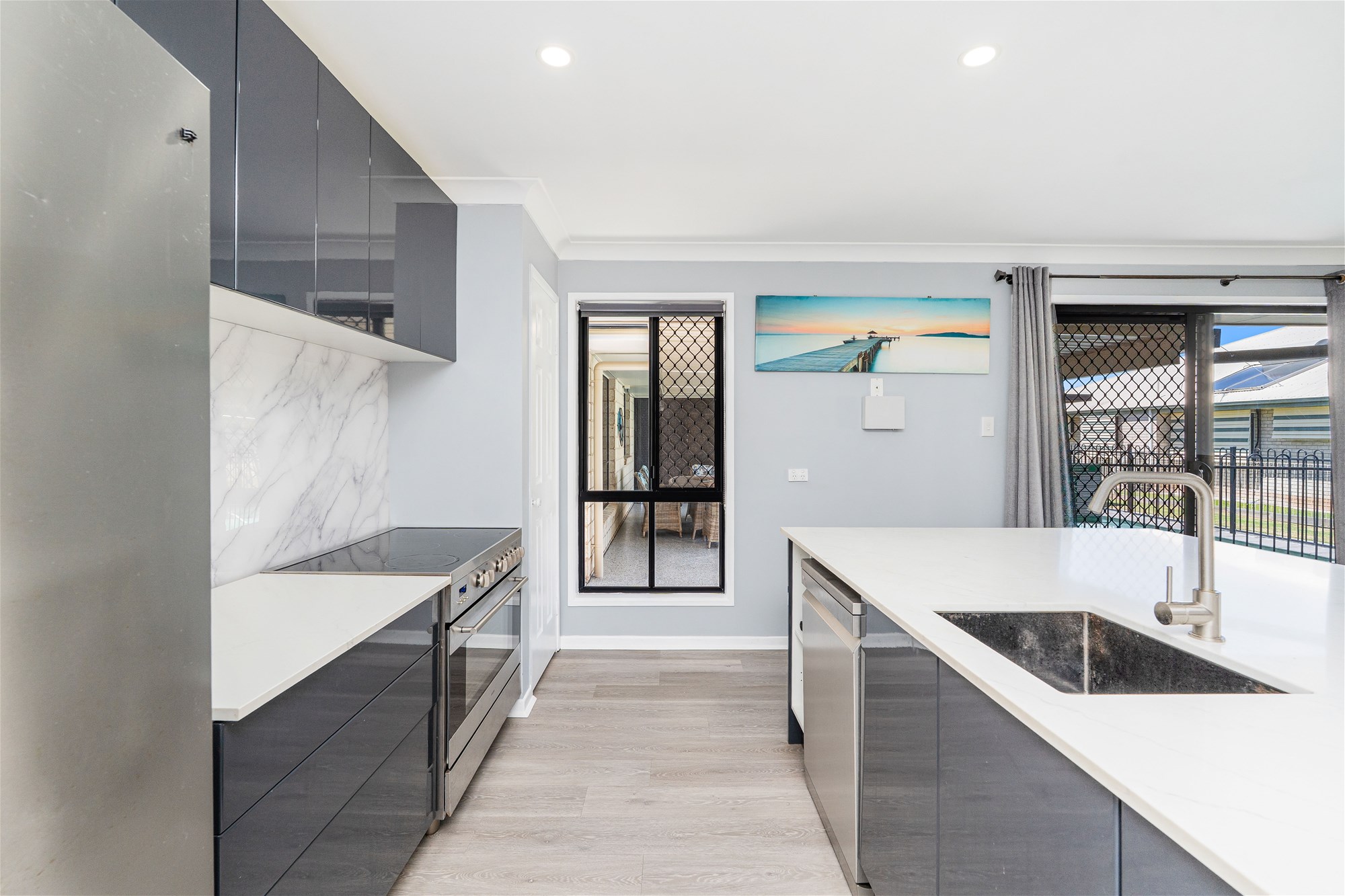 Modern kitchen with stone bench tops, massive breakfast bar, dishwasher and 900 freestanding cooker