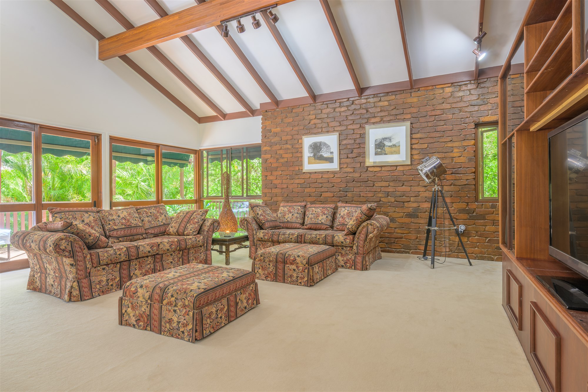 · Lounge with built in TV cabinet and timber deck