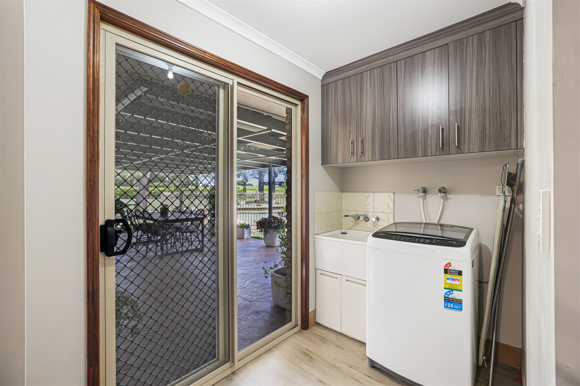 o Laundry with built-in cupboards and wash tub, plus external access to clothesline