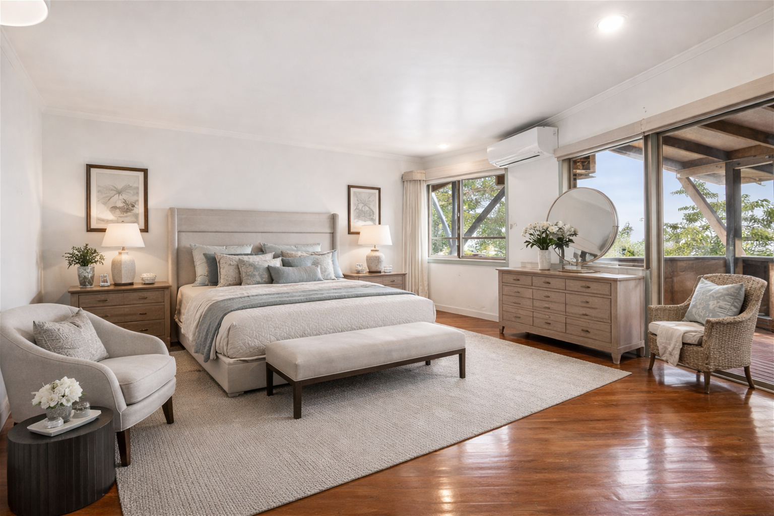 • Four generous bedrooms, select rooms air-conditioned for year-round comfort