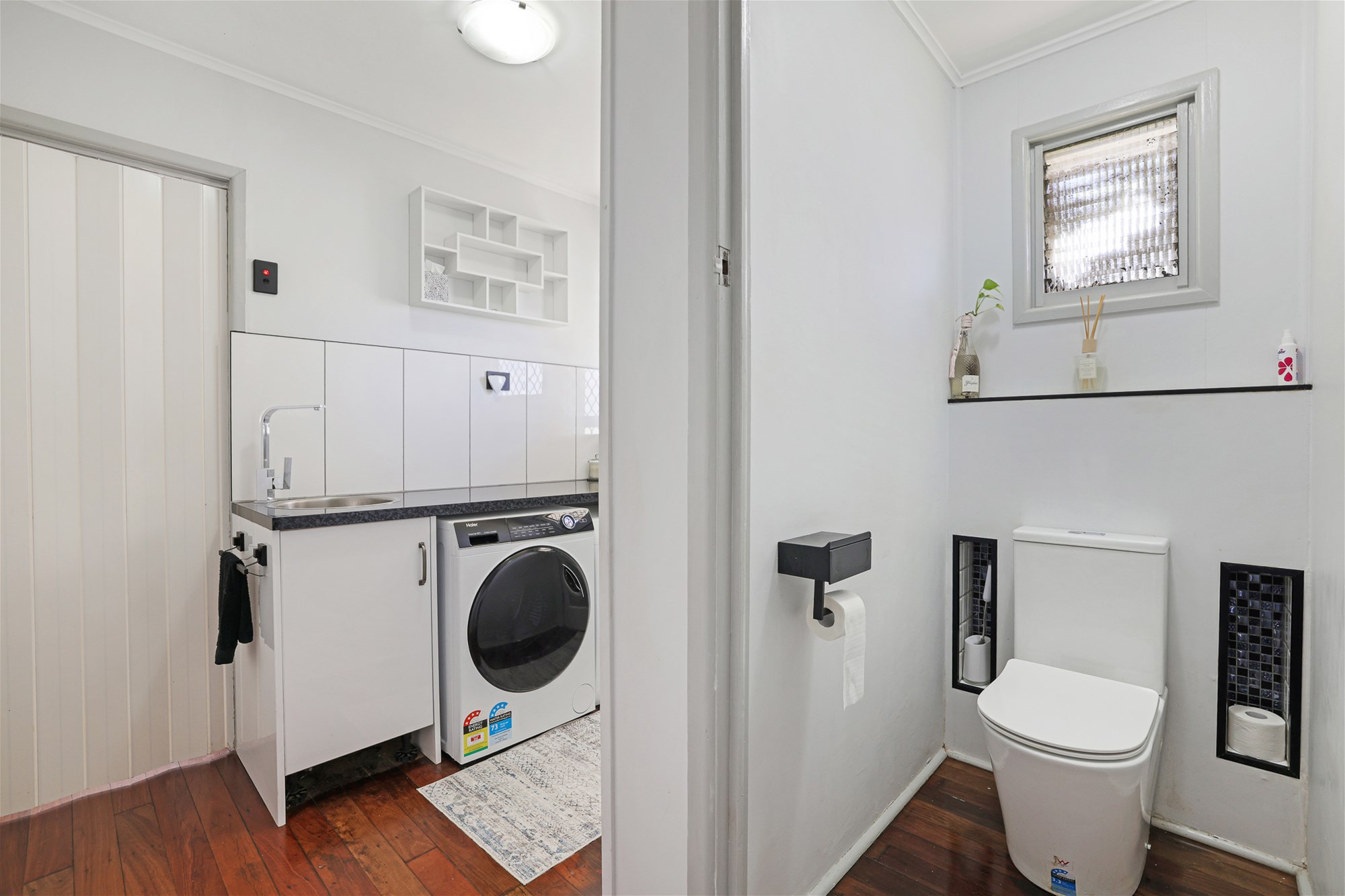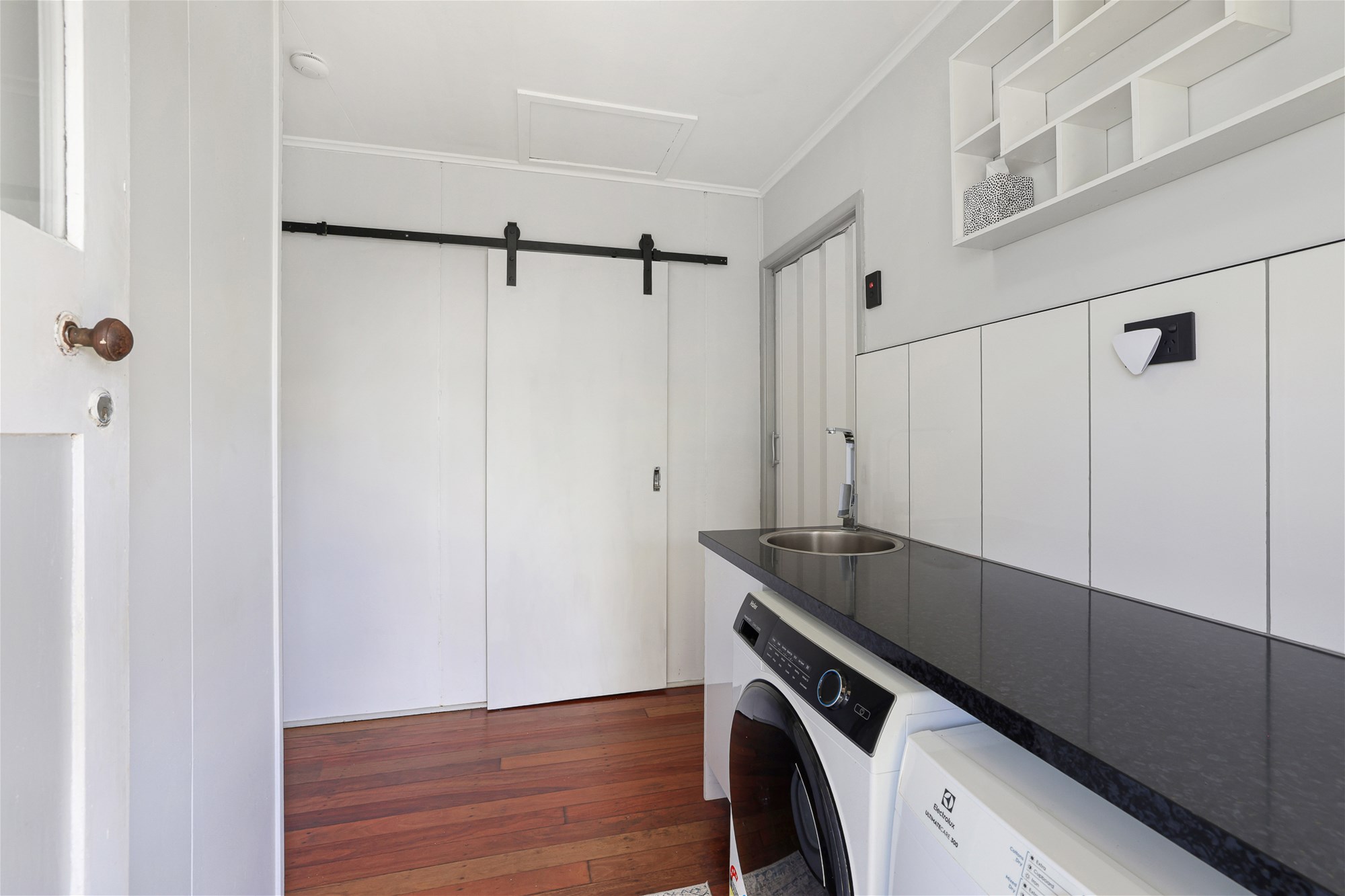 o Modern laundry showcasing all new cabinetry, ample bench space and storage with external access to clothesline