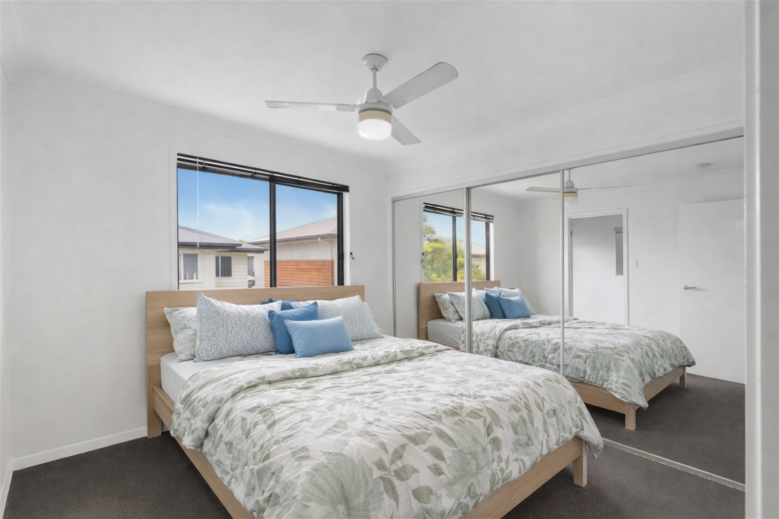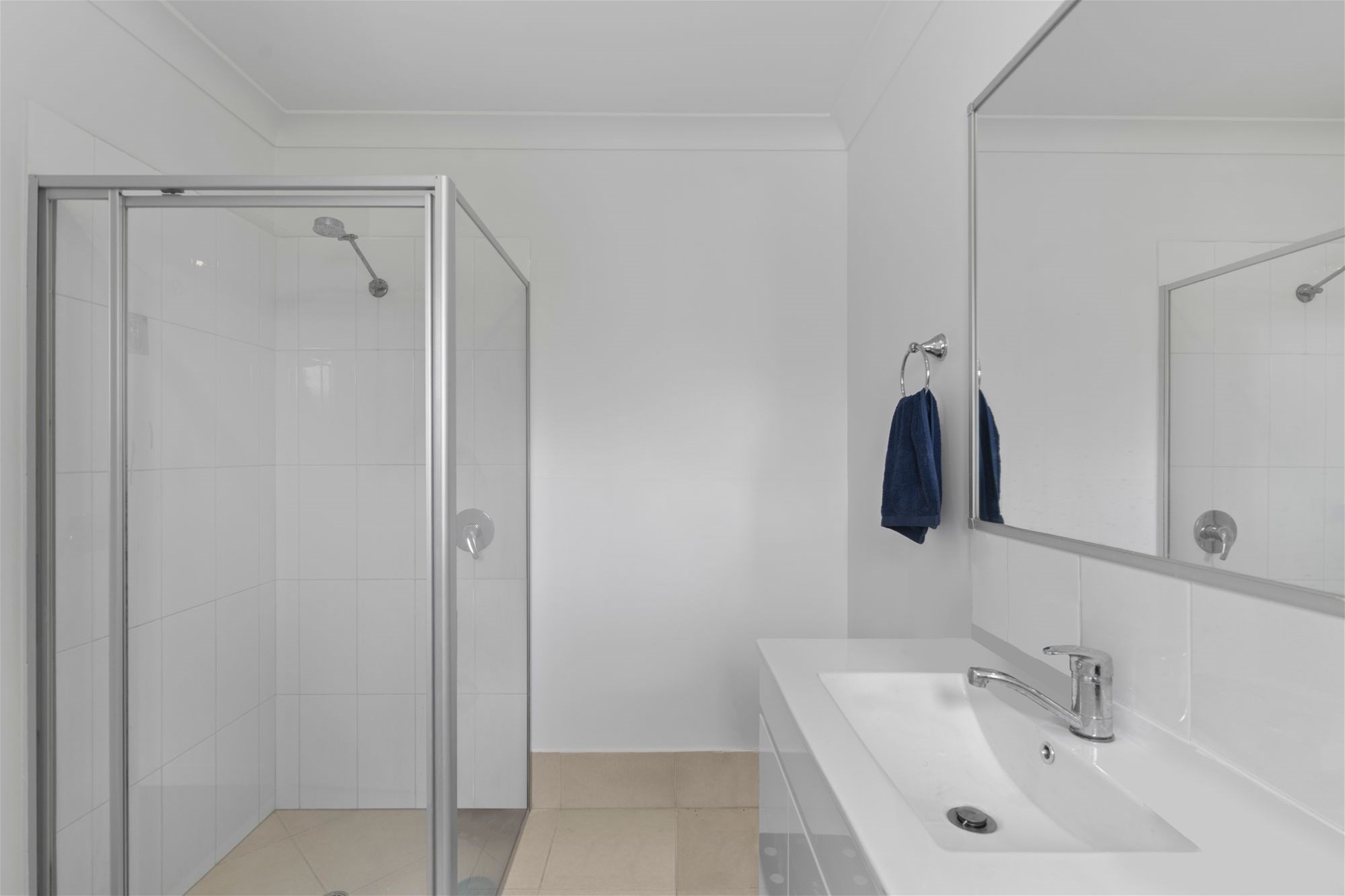 Upstairs, all three bedrooms are well proportioned and include mirrored built-in wardrobes, ceiling fans, fly screens and roller blinds. The master bedroom is air-conditioned and comes with its own ensuite, while the main bathroom services the remaining bedrooms and includes both a bath and shower.