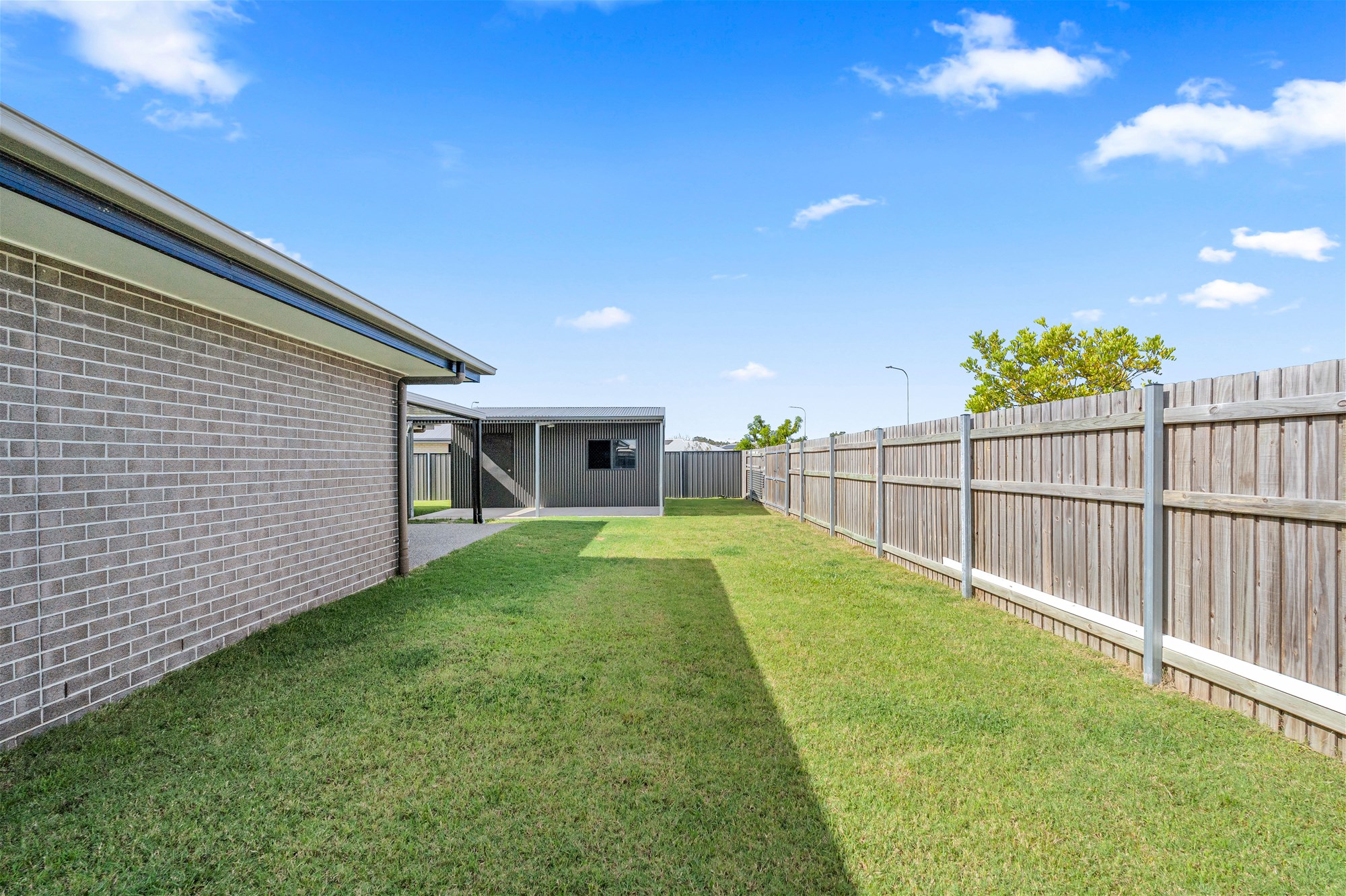 Fully fenced yard with garden shed