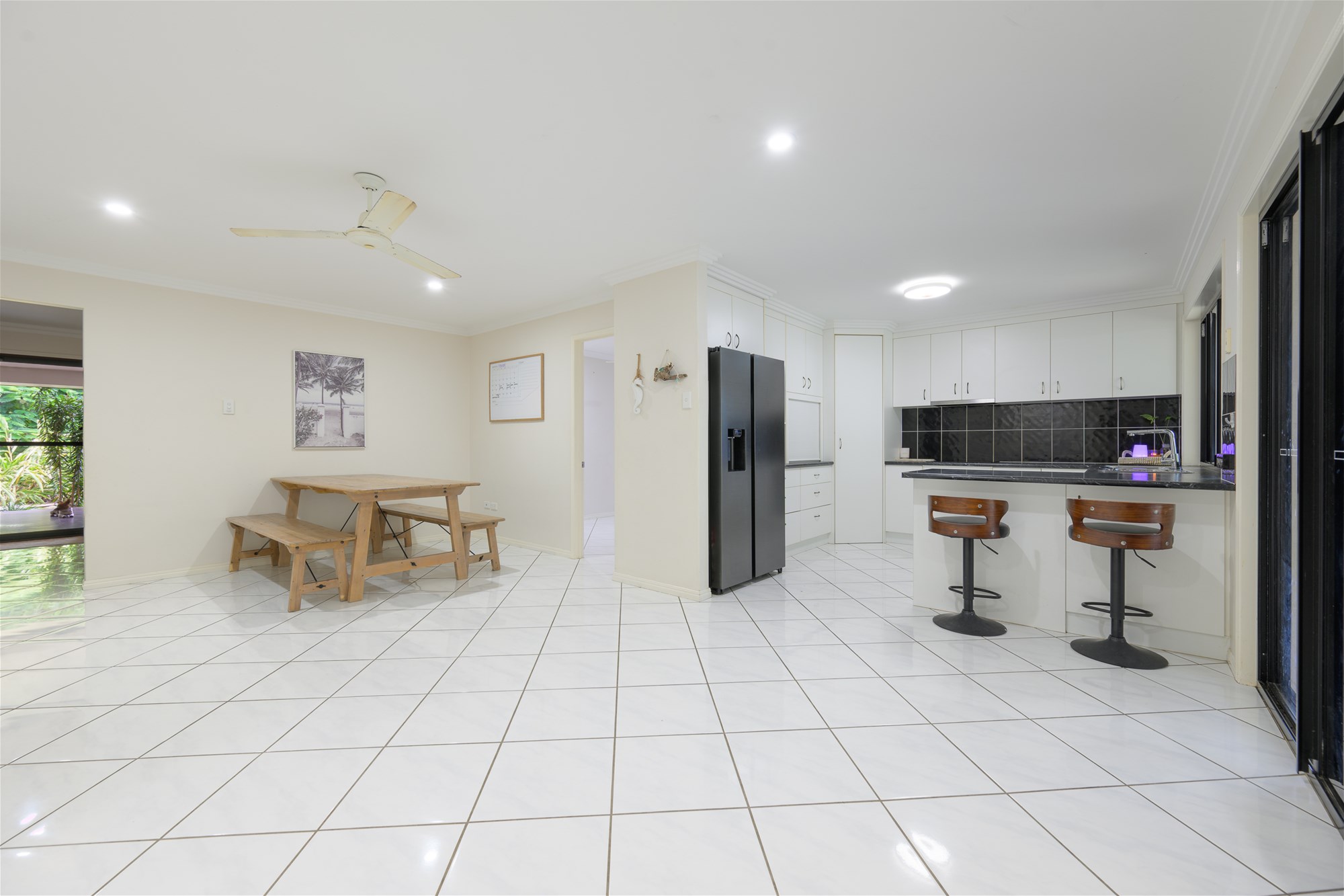 * Spacious light filled, open plan tiled family and dining area, also air conditioned for year round comfort