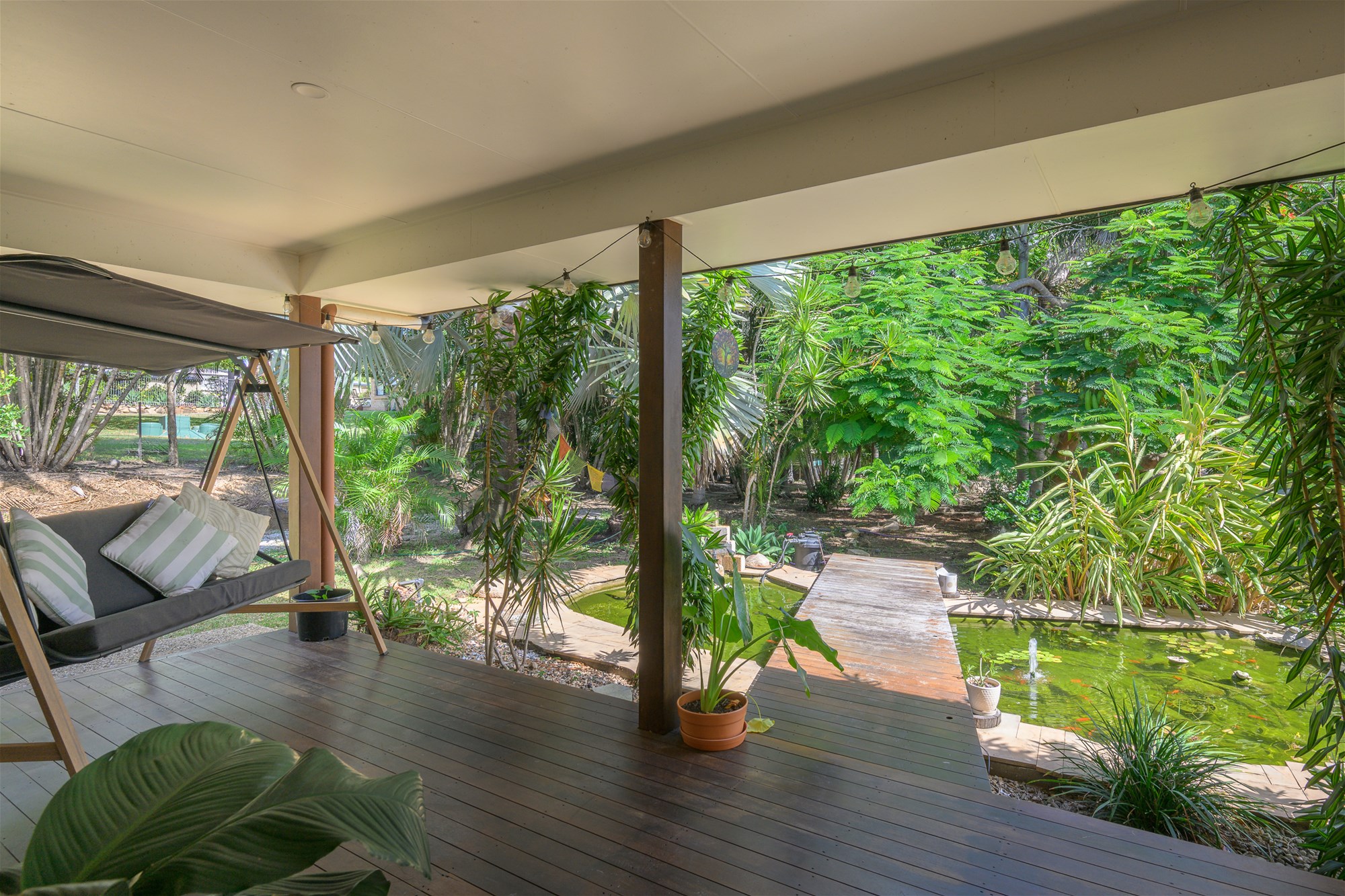 Set on approximately 1 acre, the grounds are beautifully landscaped with established gardens, a charming fishpond, and a well-established chook pen, creating a serene and functional outdoor space.