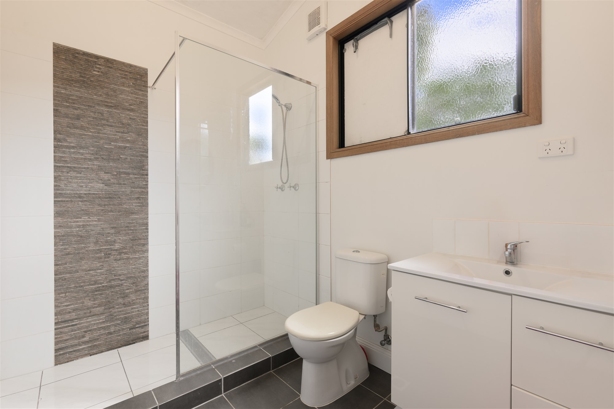 * Bathroom featuring shower, basin, and toilet