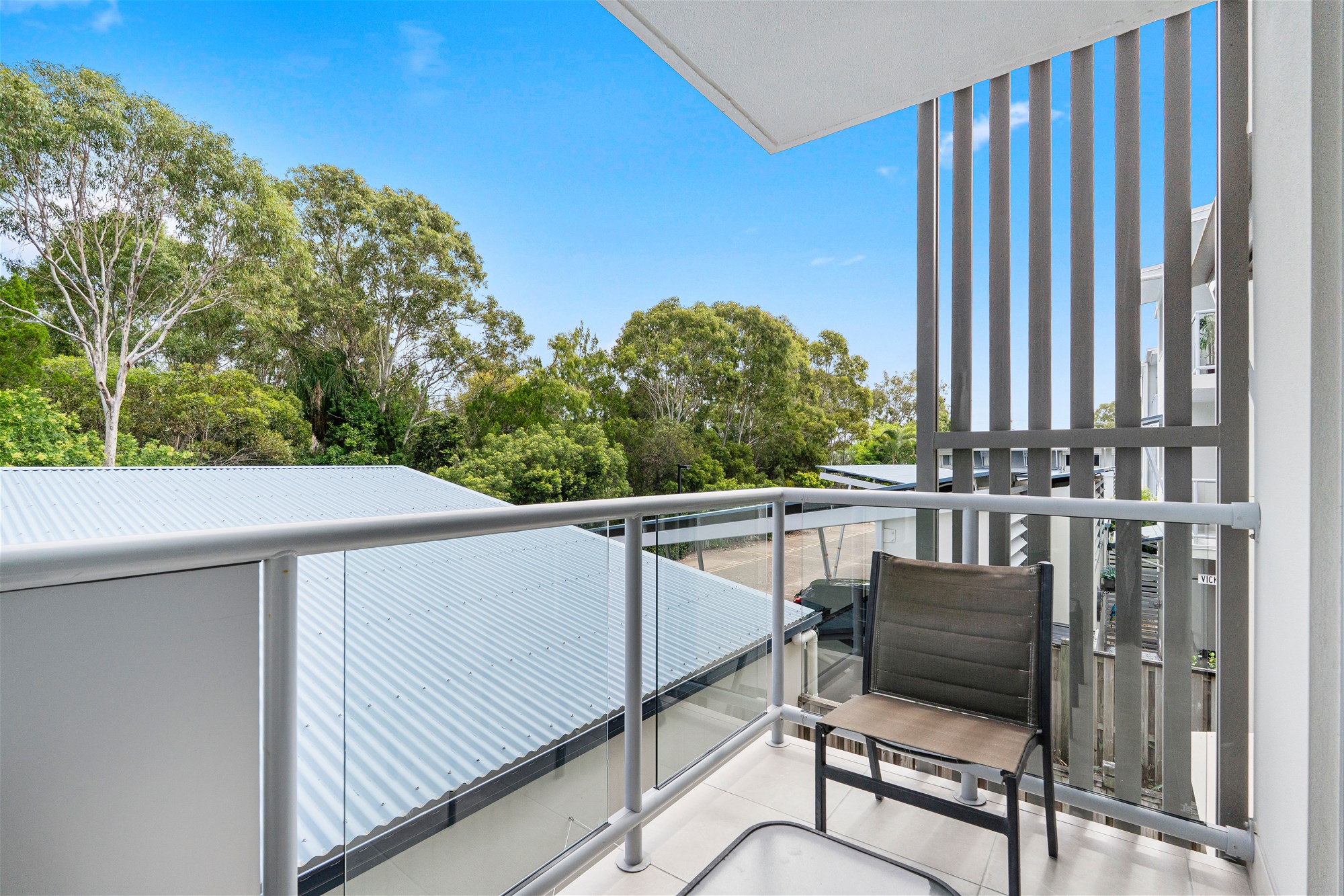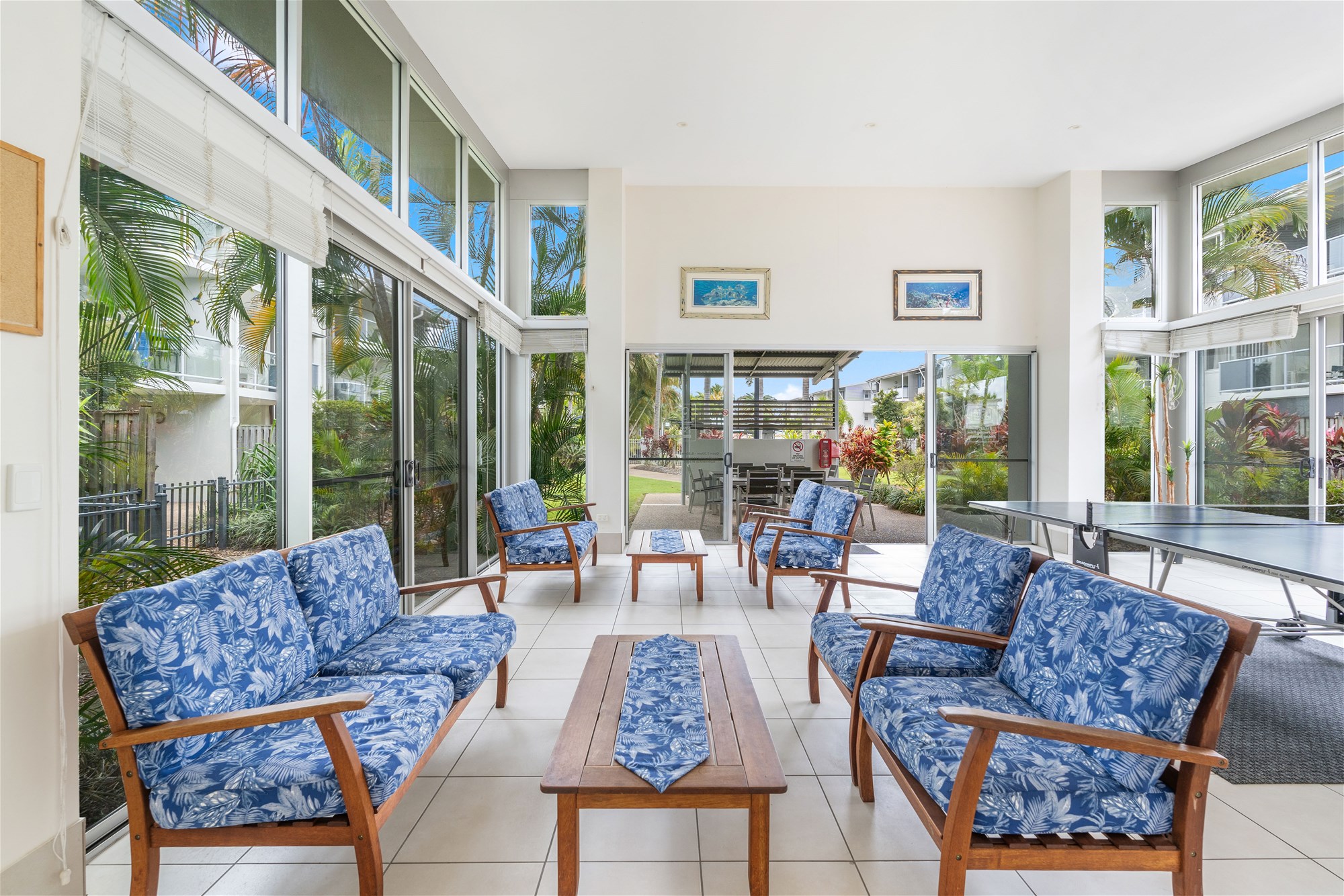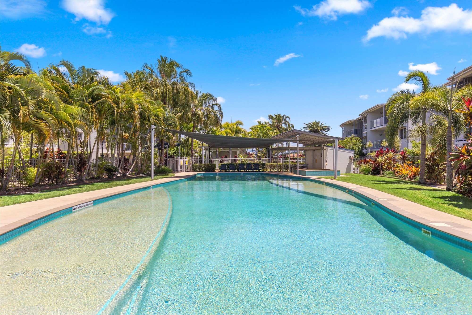 Balcony, freshly re tiled , overlooking the pool and tropical gardens