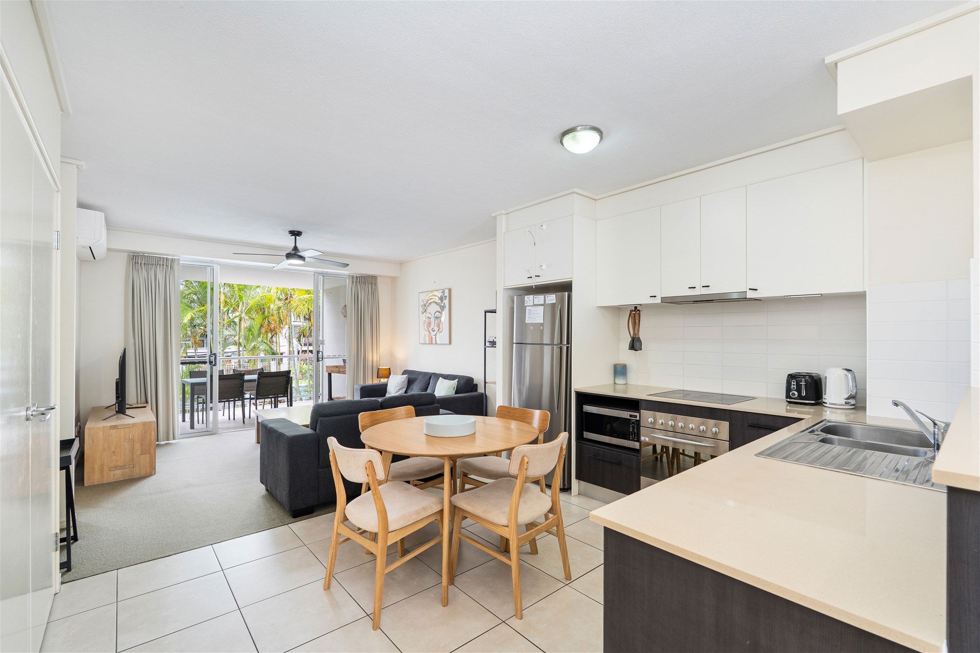Open Plan Living, dining and kitchen with air conditioning