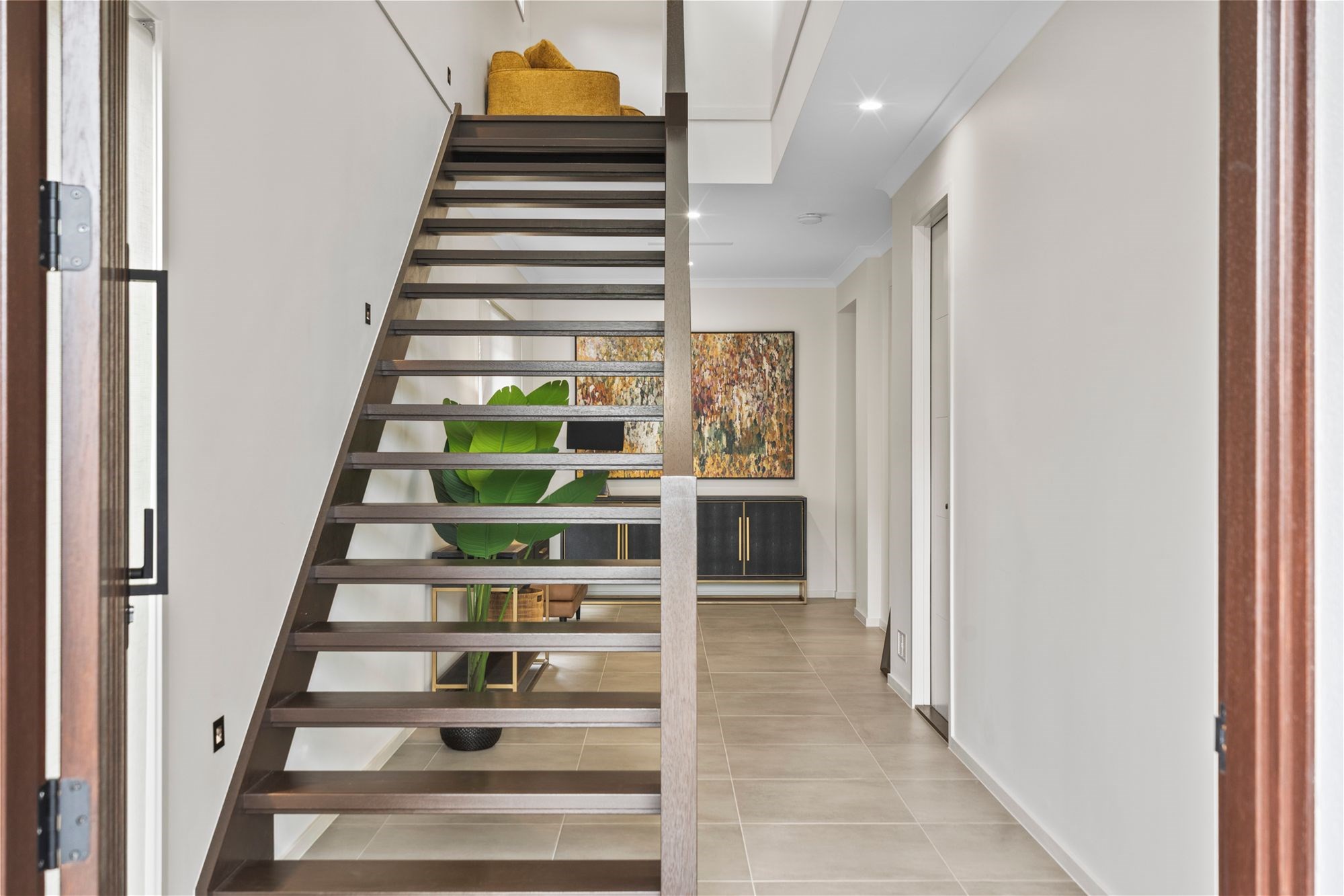 From the moment you step through the front door, the sense of space and light is undeniable. Extra high ceilings and perfectly placed windows flood the home with natural light, while tiled flooring throughout the lower level enhances the sleek, contemporary finish.