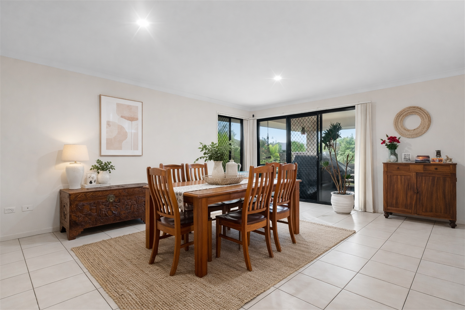 Designed with family living in mind, the home features a light-filled open-plan layout with separate living and dining zones that flow seamlessly to the covered outdoor area — ideal for weekend BBQs, kids at play, or simply unwinding while enjoying the tranquil garden outlook.