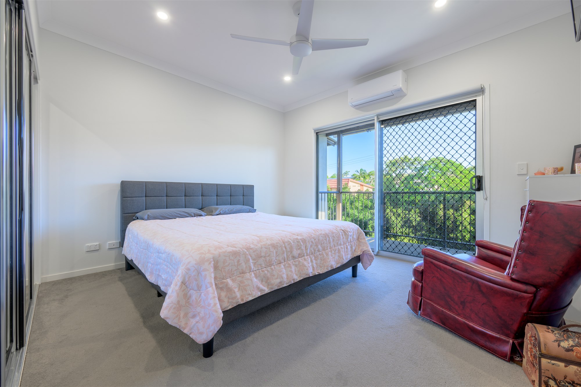• Master bedroom featuring air conditioning and direct access to a private covered balcony