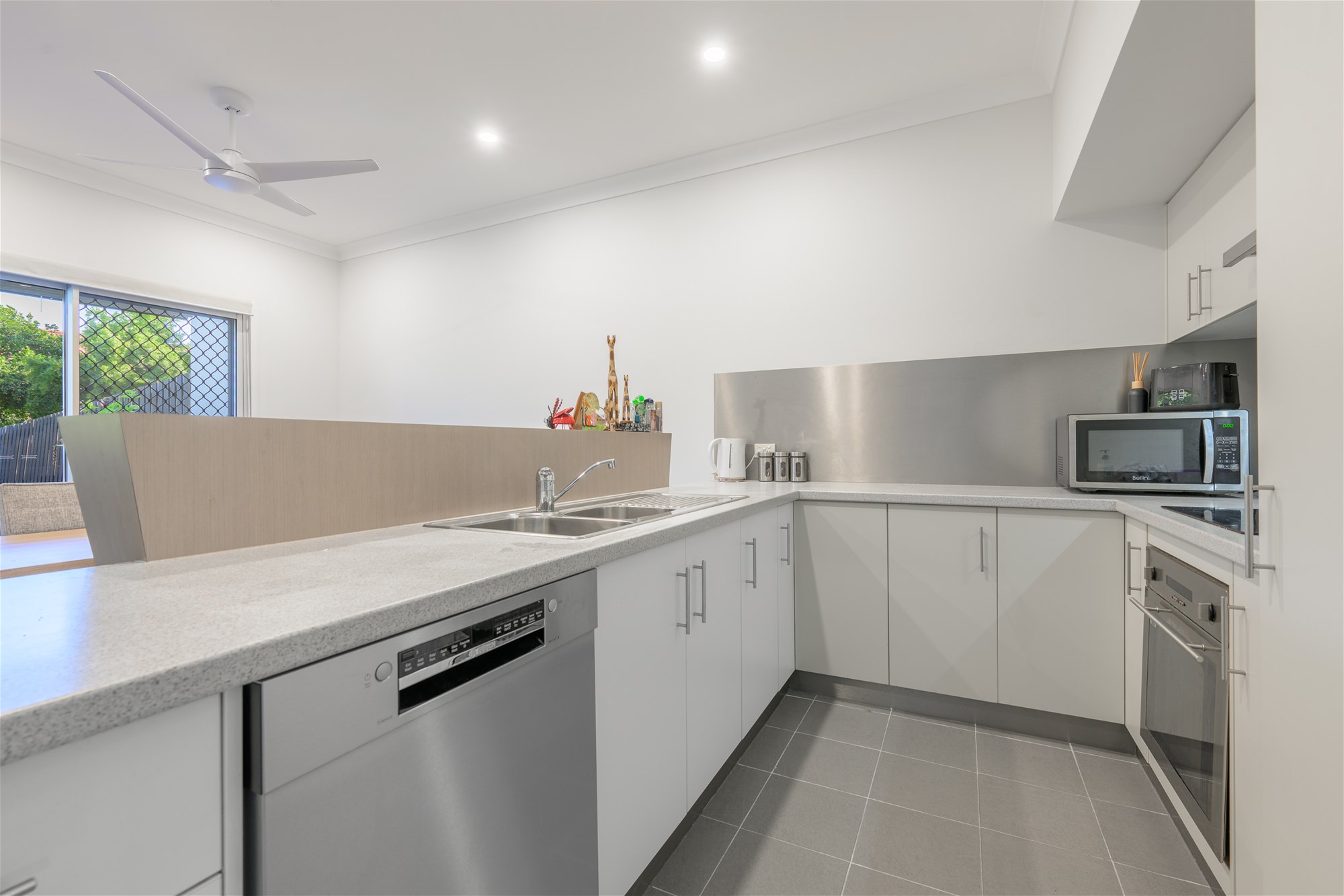 • Modern kitchen featuring generous bench space, dishwasher, electric cooktop and oven, excellent cabinetry and stainless steel splashback