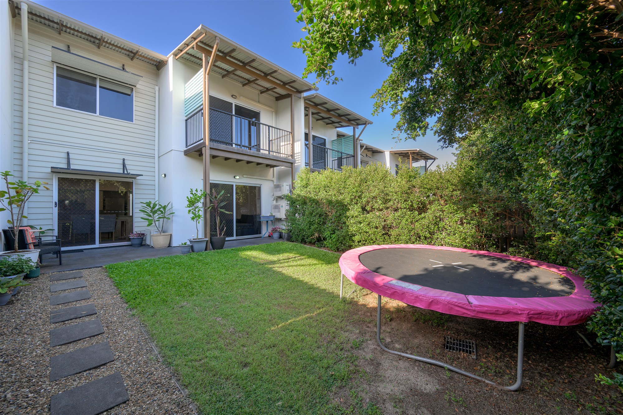 The lower level is designed for relaxed everyday living, with a spacious open plan living, dining and kitchen area that feels light, airy and welcoming. Sliding doors connect the interior to a covered outdoor patio and private yard, creating the perfect setting for entertaining, relaxing or enjoying a bit of extra space for kids and entertaining. Upstairs, the bedrooms provide comfortable accommodation, including a well sized master retreat with its own balcony.
