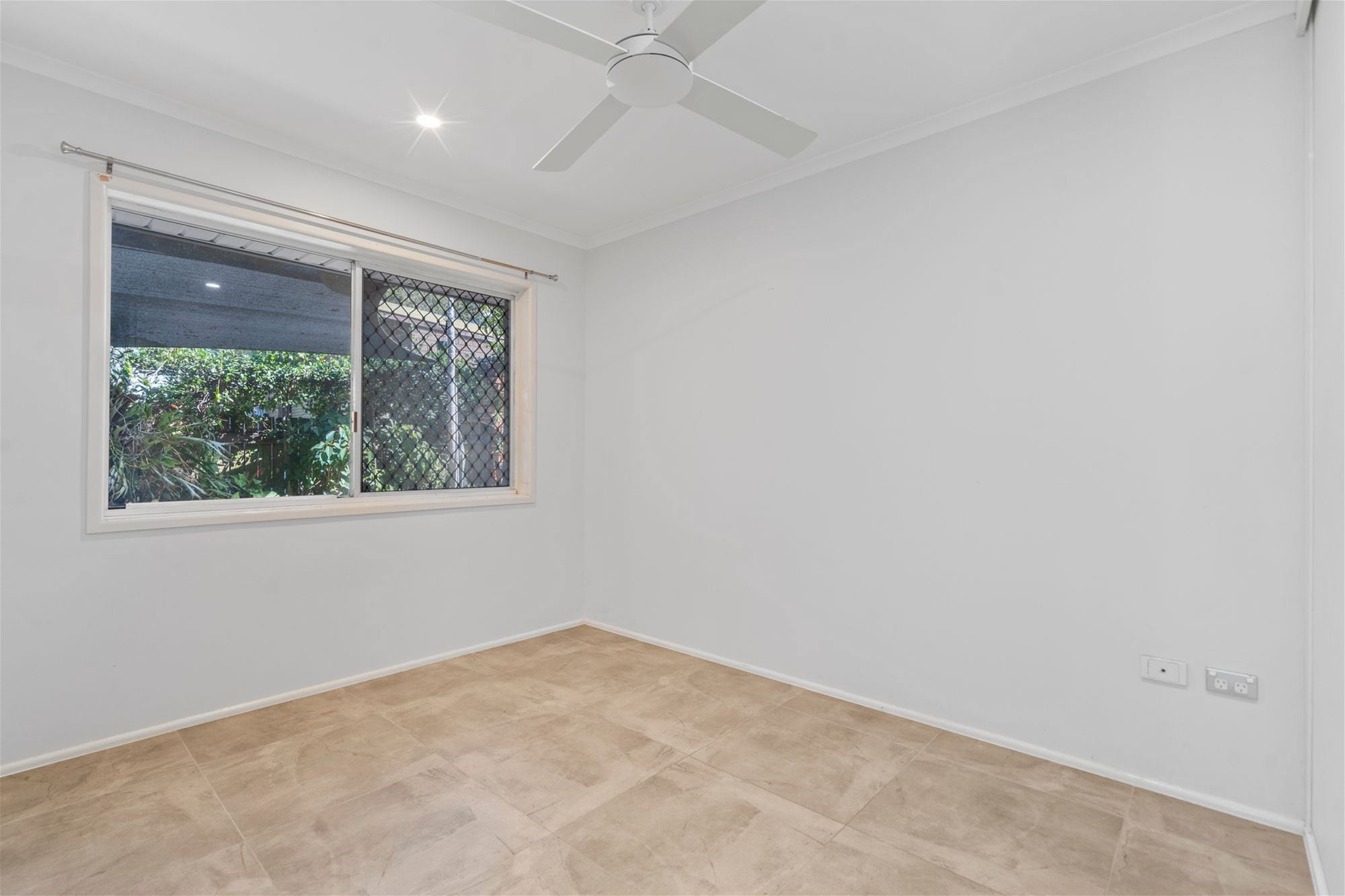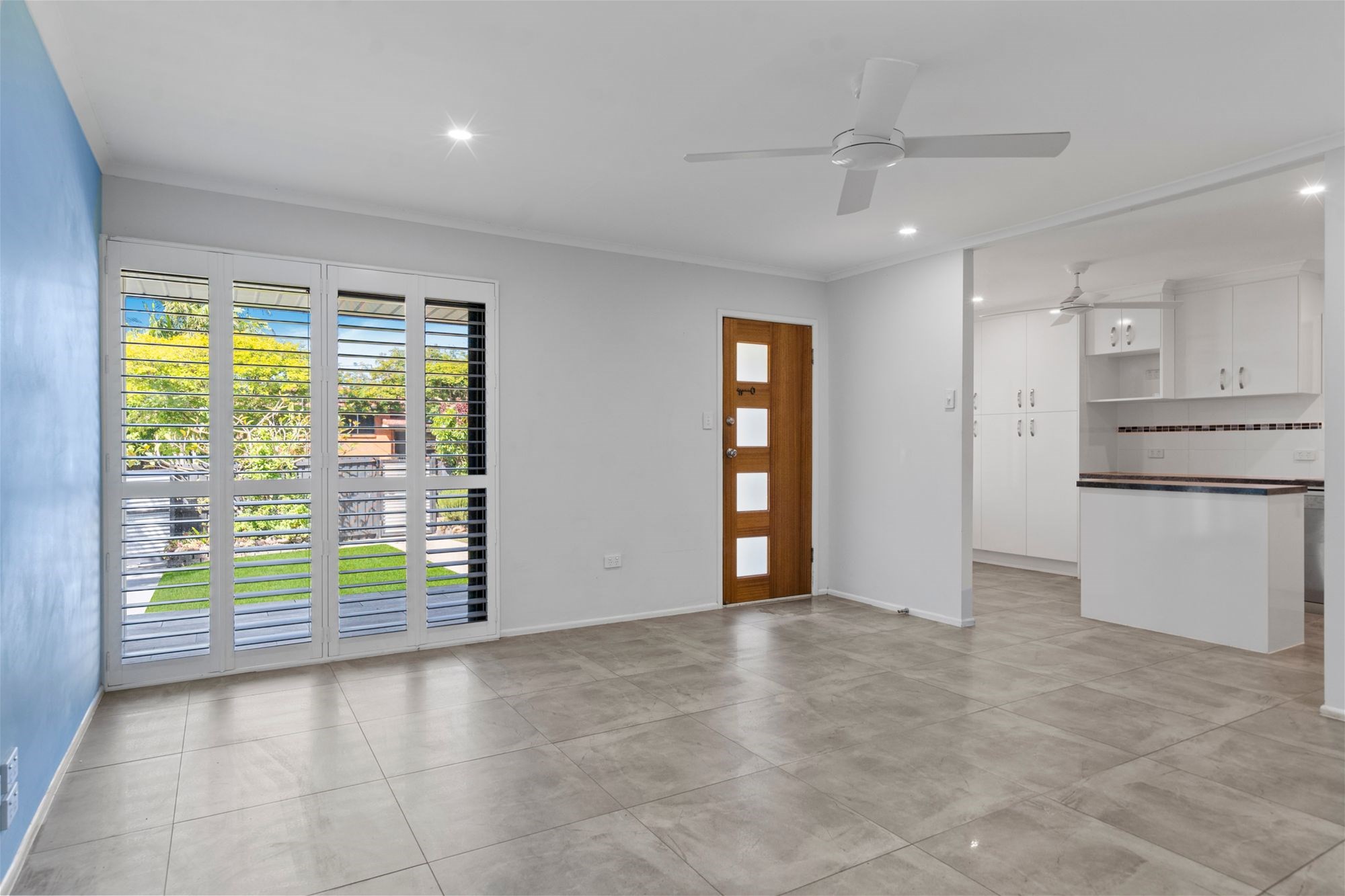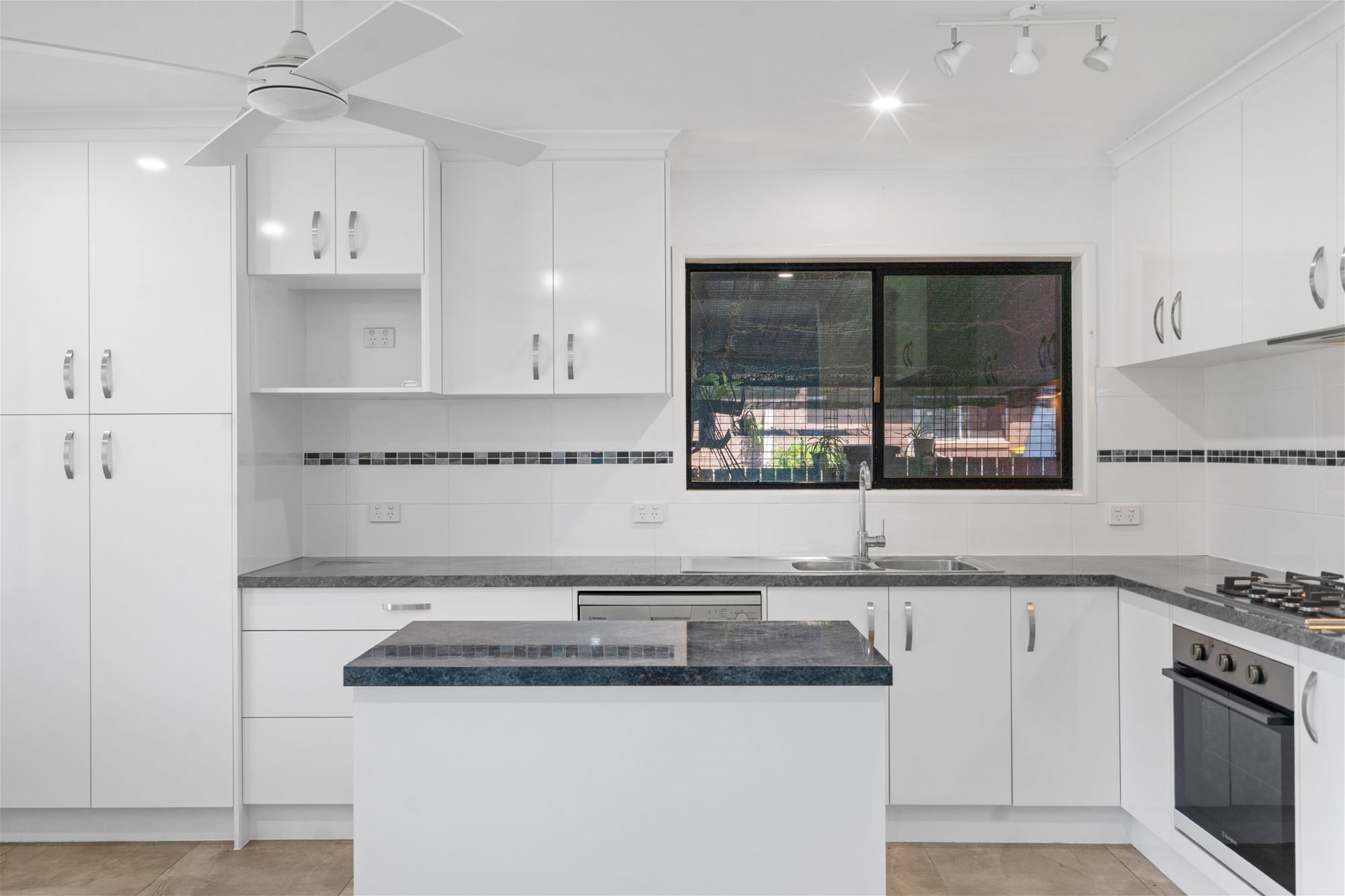 The upgraded kitchen is both stylish and practical, complete with a gas cooktop, dishwasher, ample storage and a central island bench. This space flows seamlessly into the adjoining meals area, enhanced by a ceiling fan for year-round comfort.