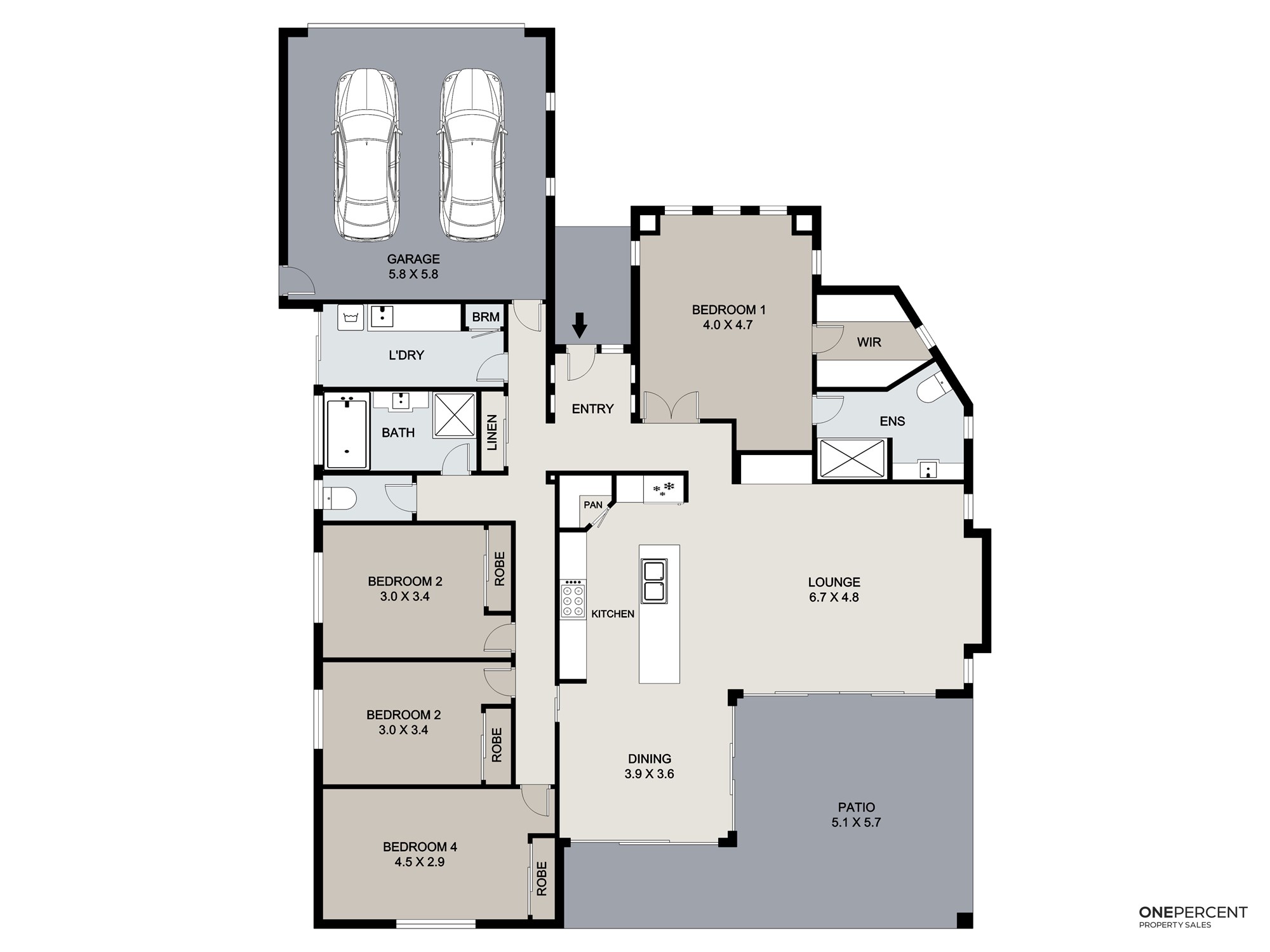 * Four spacious bedrooms with built-in storage