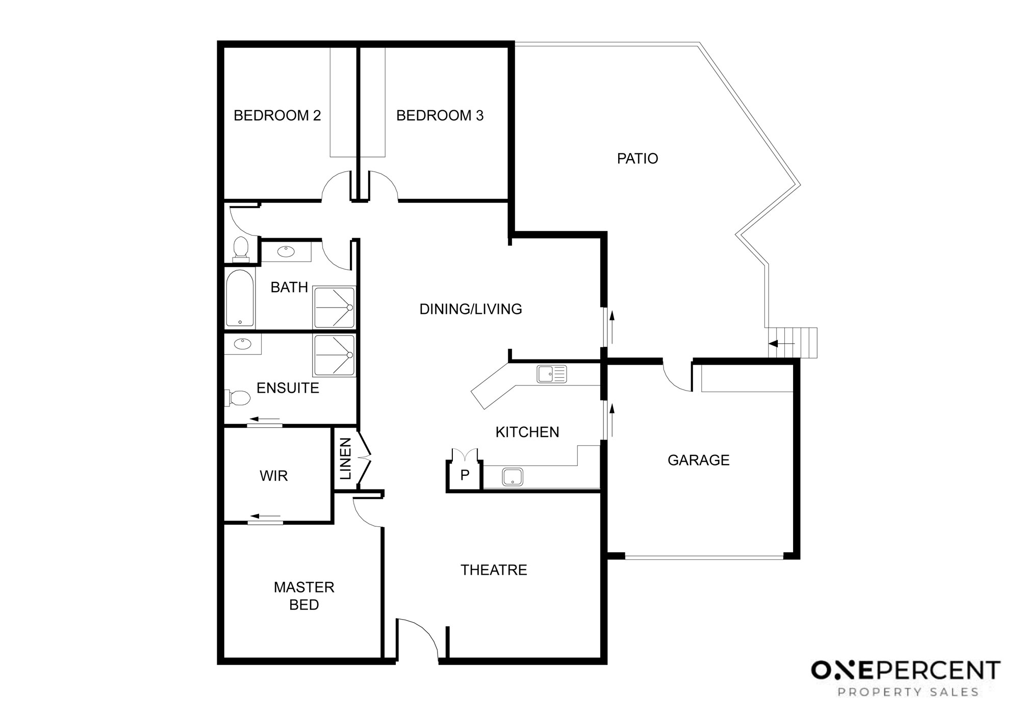 Three air conditioned bedrooms, main with ensuite and walk through robe